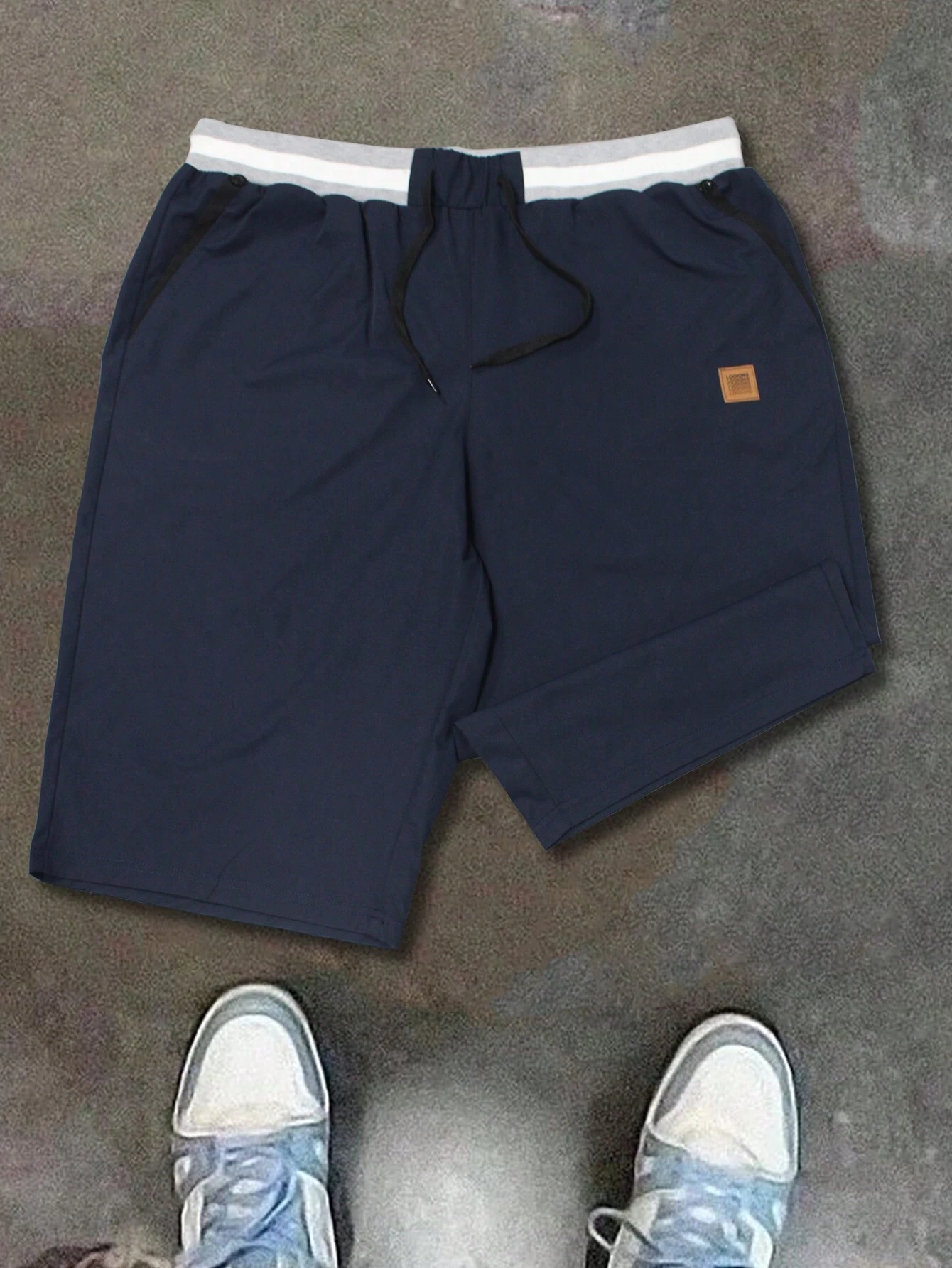 Manfinity Homme Plus Size Men’s Casual Shorts With Drawstring And Color Block Patch Design