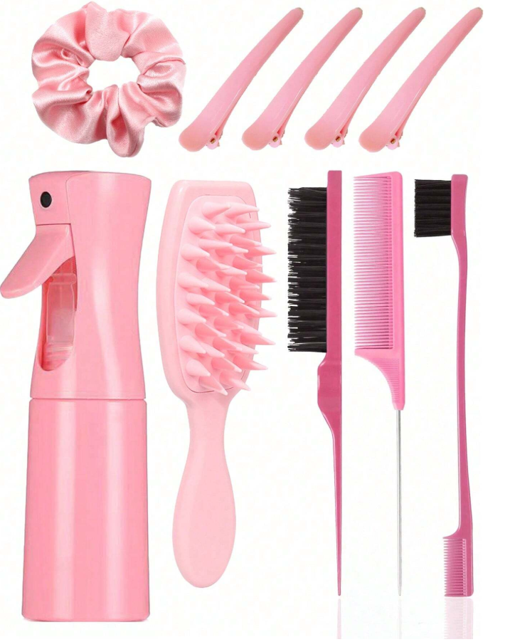 1 Piece /10 Piece Set Exfoliating Brush Set With Long Handle Silicone Scalp Massager, Rat-Tail Comb And Spray Bottle – Clean Grooming Hair Grab Massage Comb Silicone Soft Tooth Home Women’s Shampoo Comb Suitable For All Hair Types And Travel Needs
