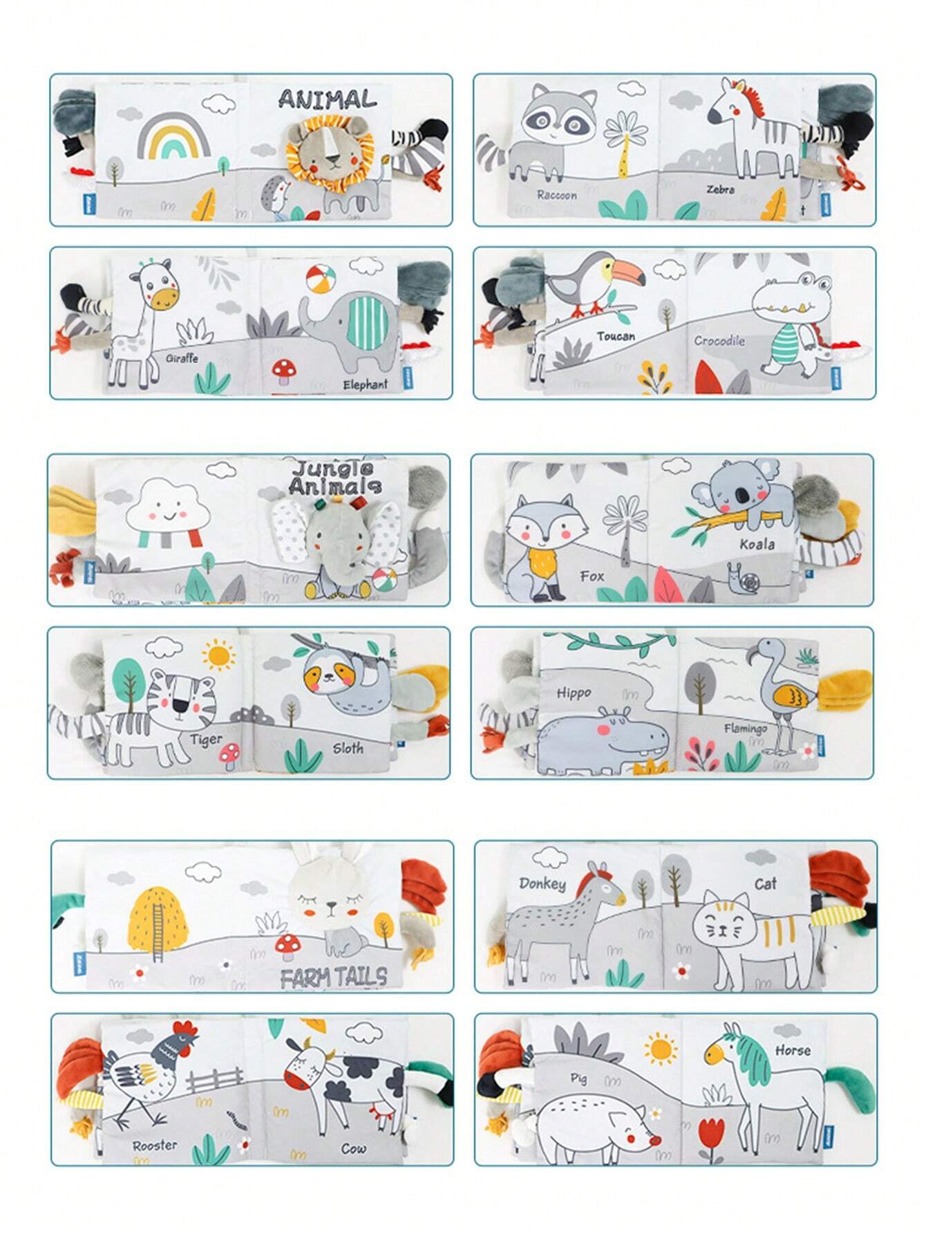1pc 3D Animal Tail Baby Cloth Book With Rustling Sound Untearable Toys For Infant Sensory Training Children’s Gift
