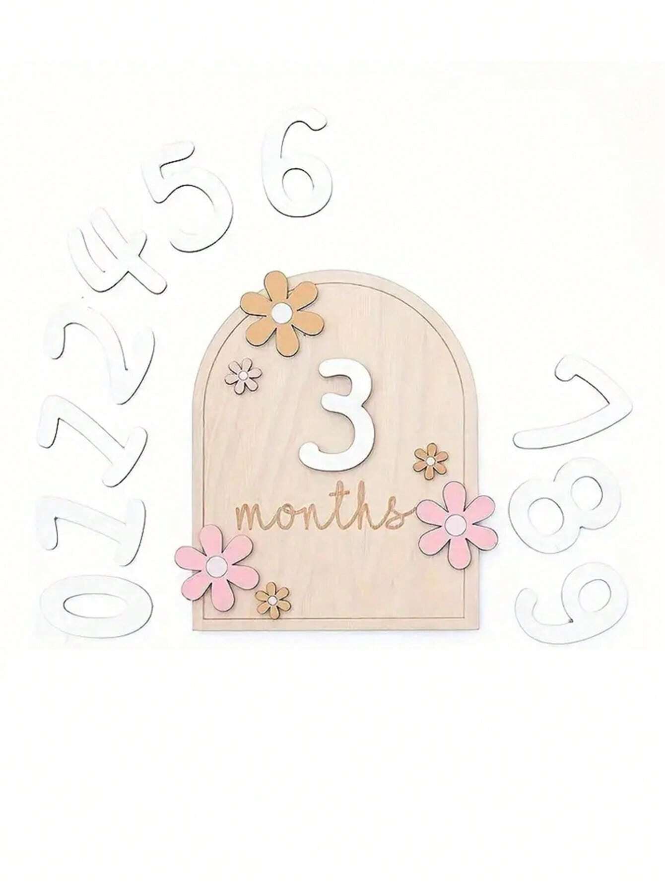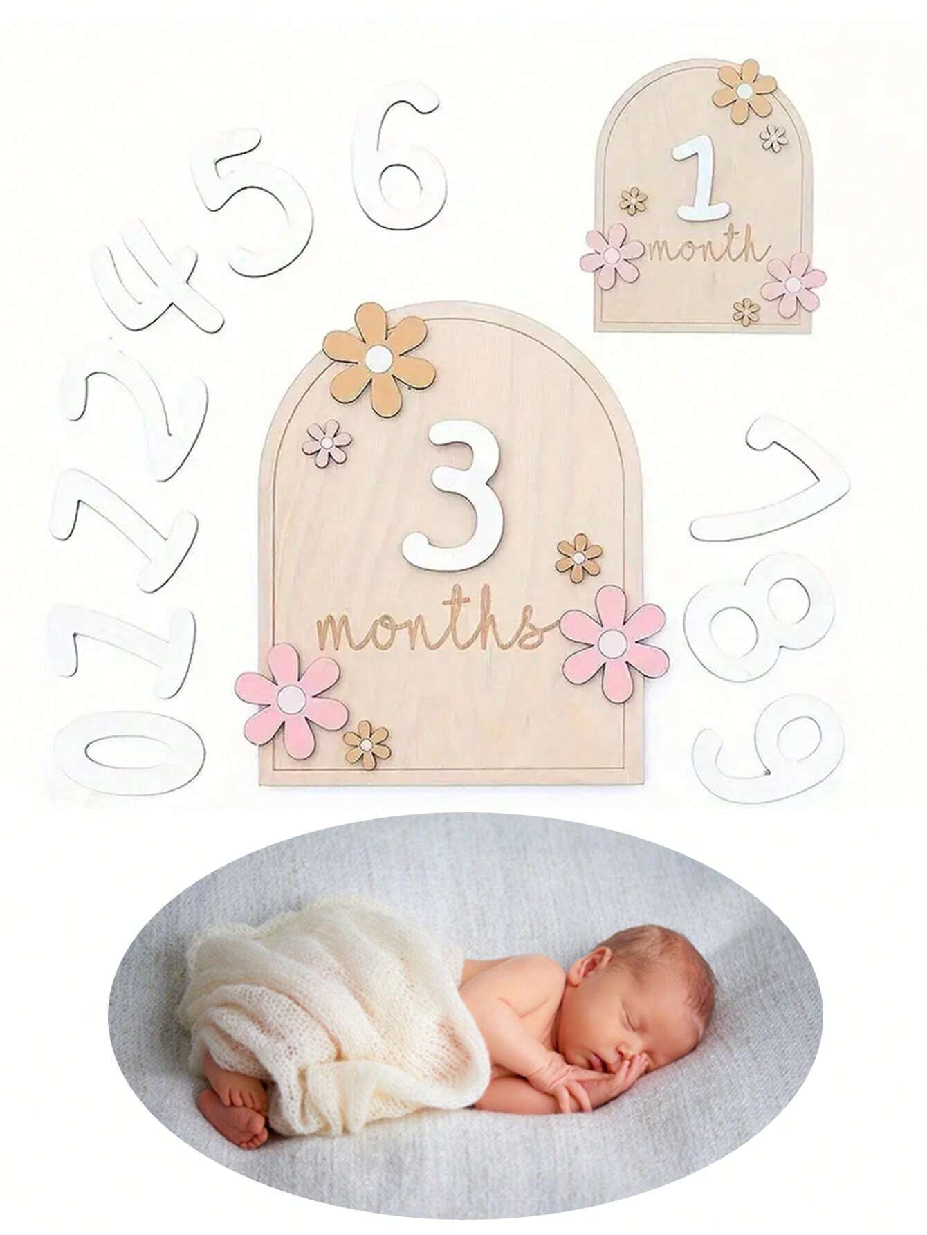 1pc Baby Milestone Commemorative Card Set, Baby First Birthday Gift, Double-Sided Stickers With Flower Decoration Monthly Milestone Cards (Set Includes 1 Milestone Card And Numbers 0-9)
