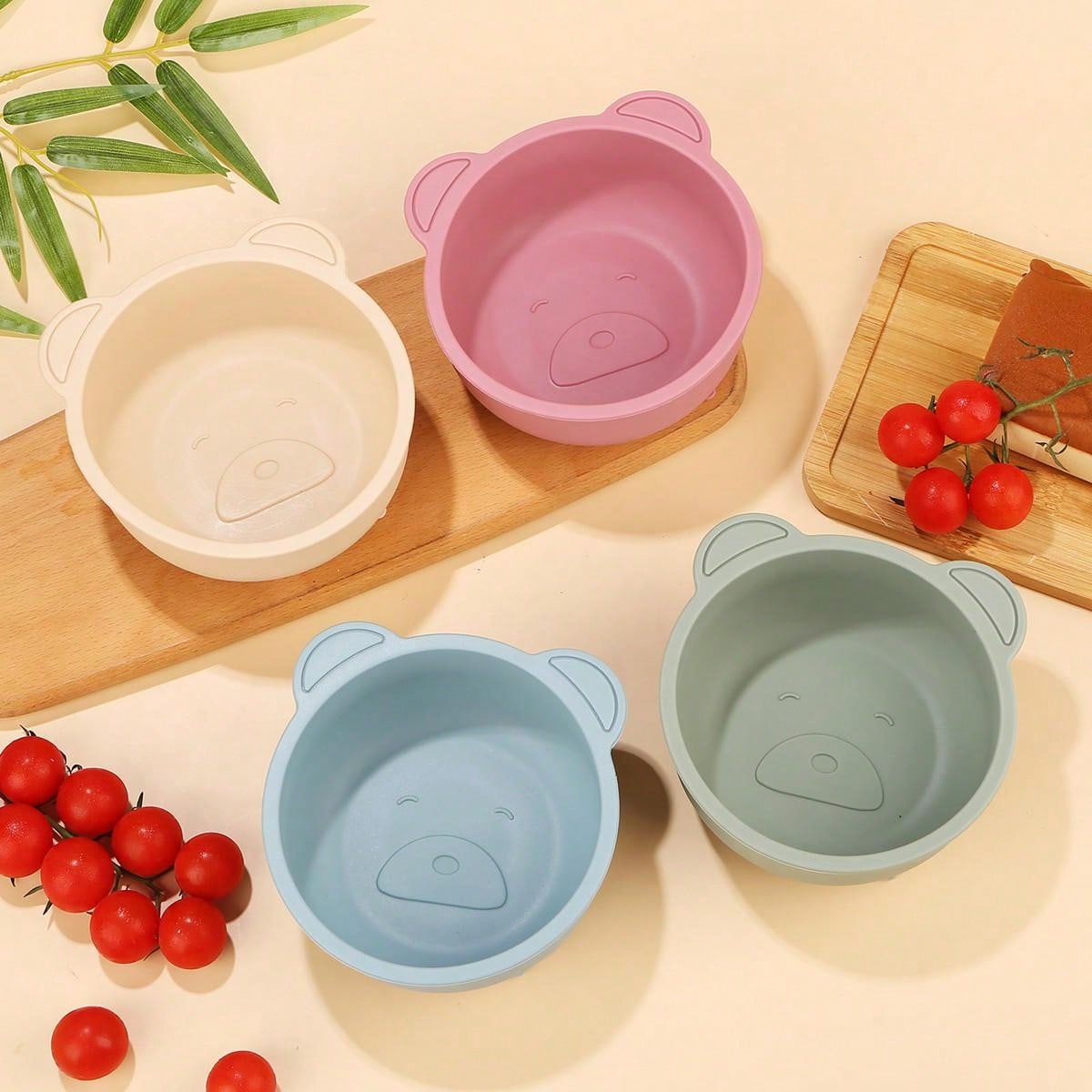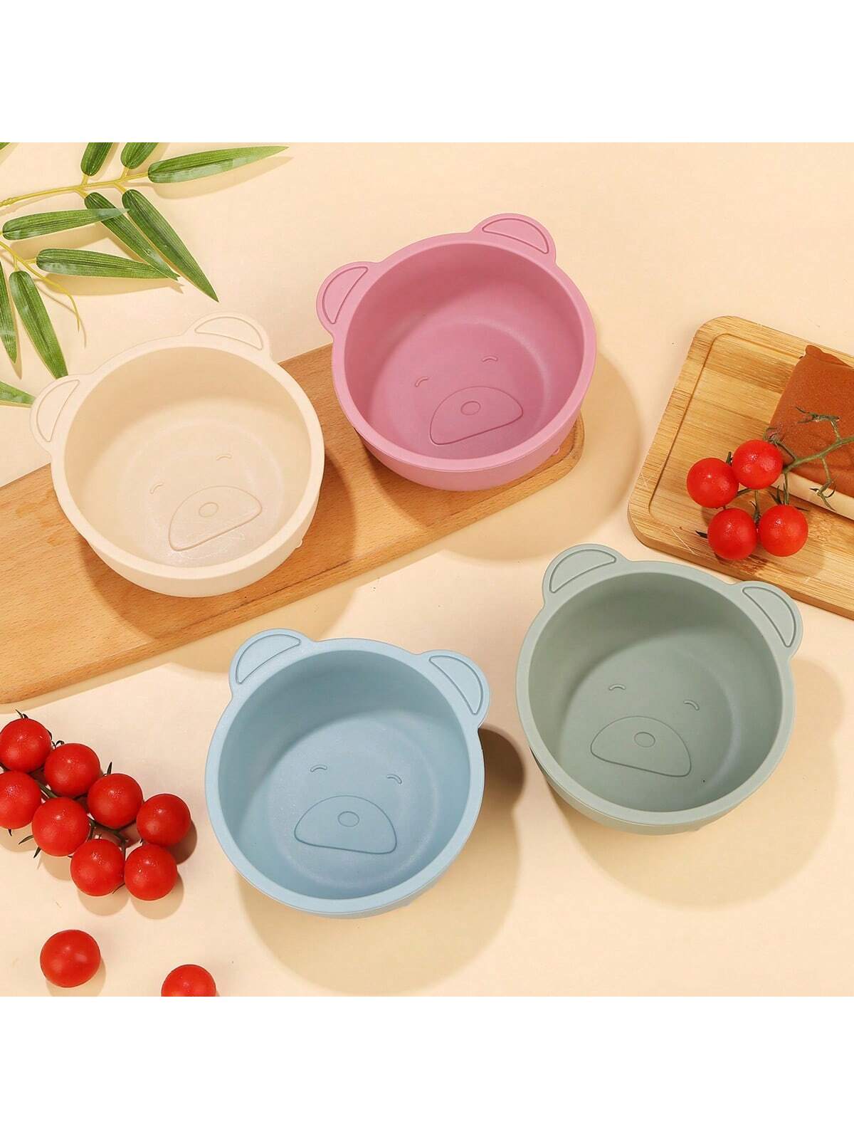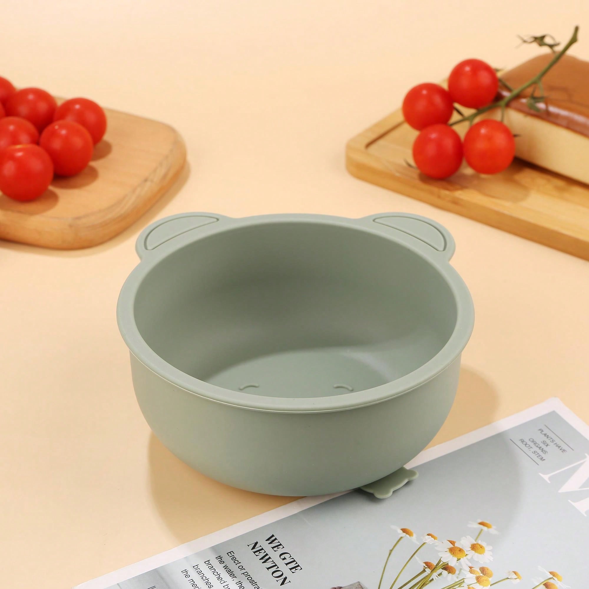 1pc Infant Silicone Bowl, Cute Bear Design, Non-Slip Child Feeding Bowl, Cartoon Tableware