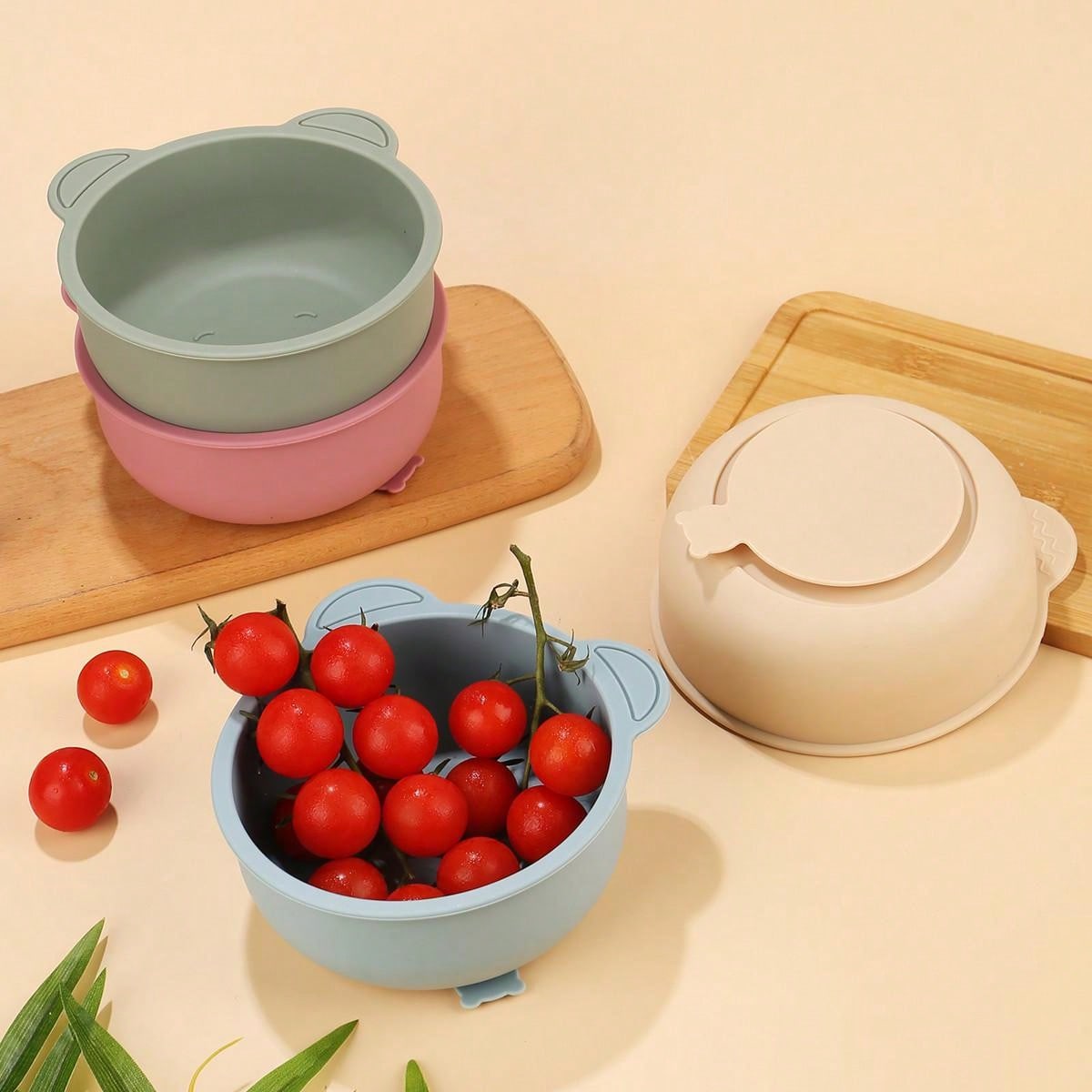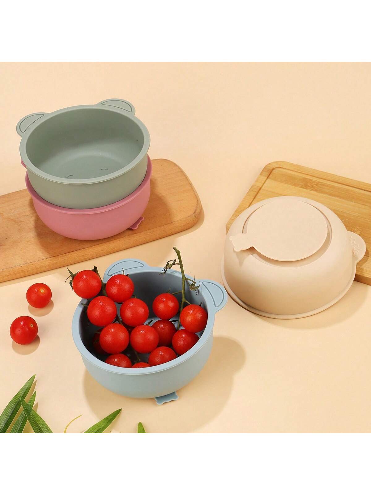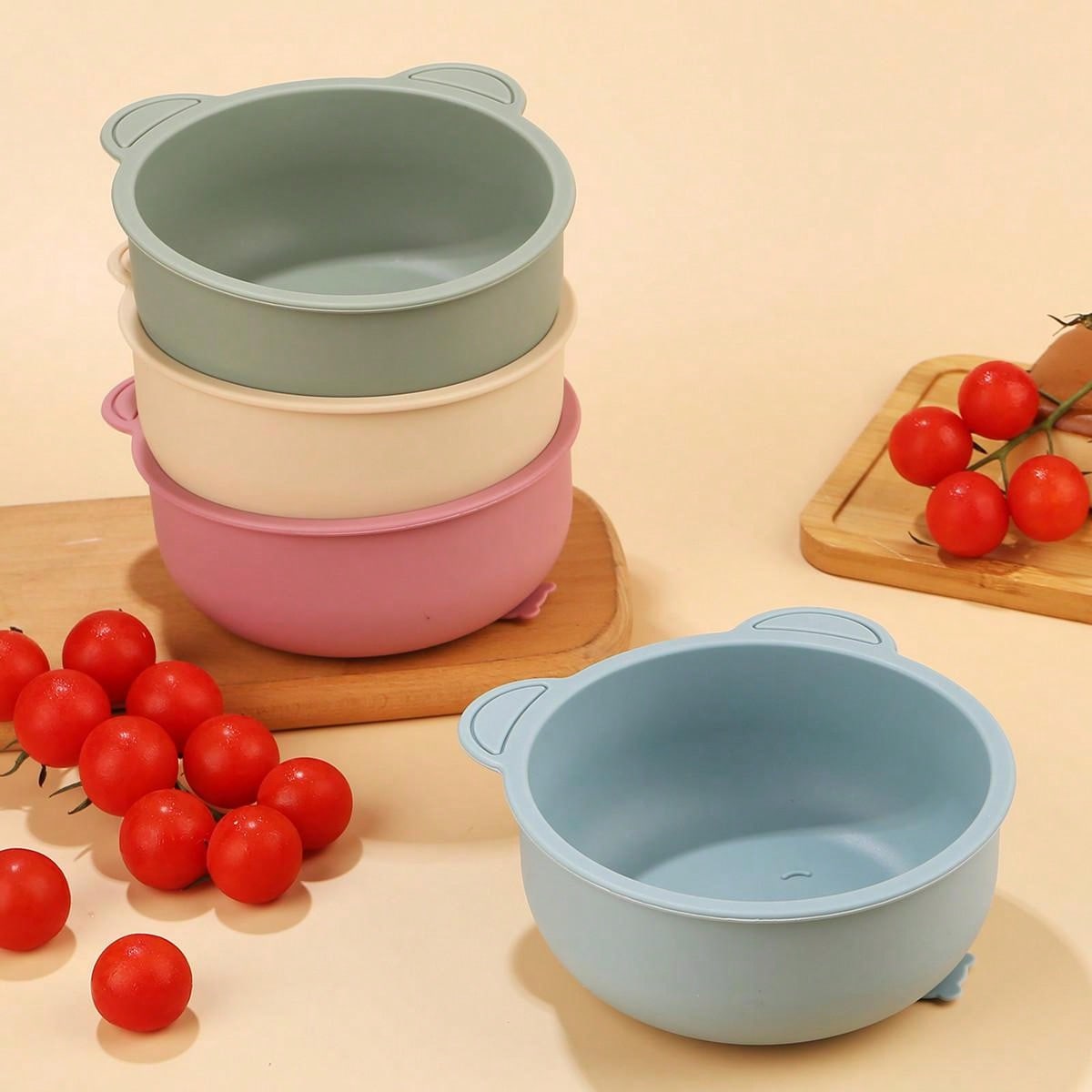 1pc Infant Silicone Bowl, Cute Bear Design, Non-Slip Child Feeding Bowl, Cartoon Tableware