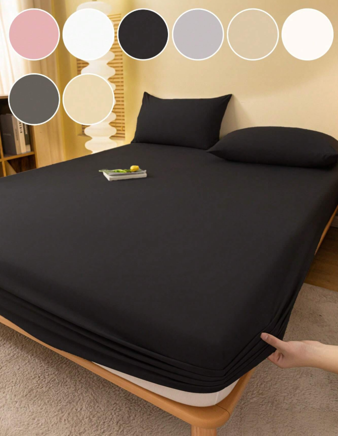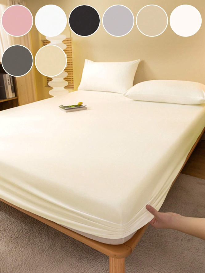 1pc Solid Color Fitted Sheet, Bed Sheet, Mattress Cover, Soft And Comfortable Bedding For Bedroom, Mattress Protector For Bedroom, Skin-Friendly Bed Sheets, For All Seasons Dustproof Non-Slip Bedspread, Fitted Bottom Sheet For Twin, Full, King, Queen Size, Machine Washable,(Without Pillowcase)