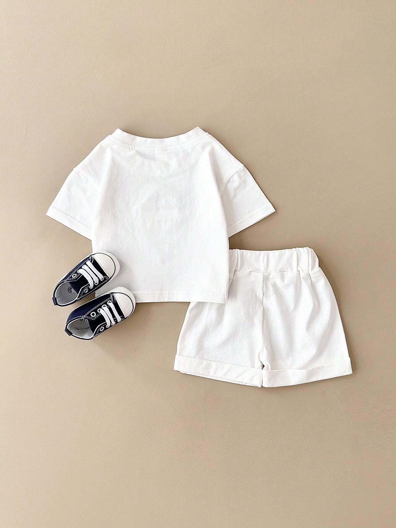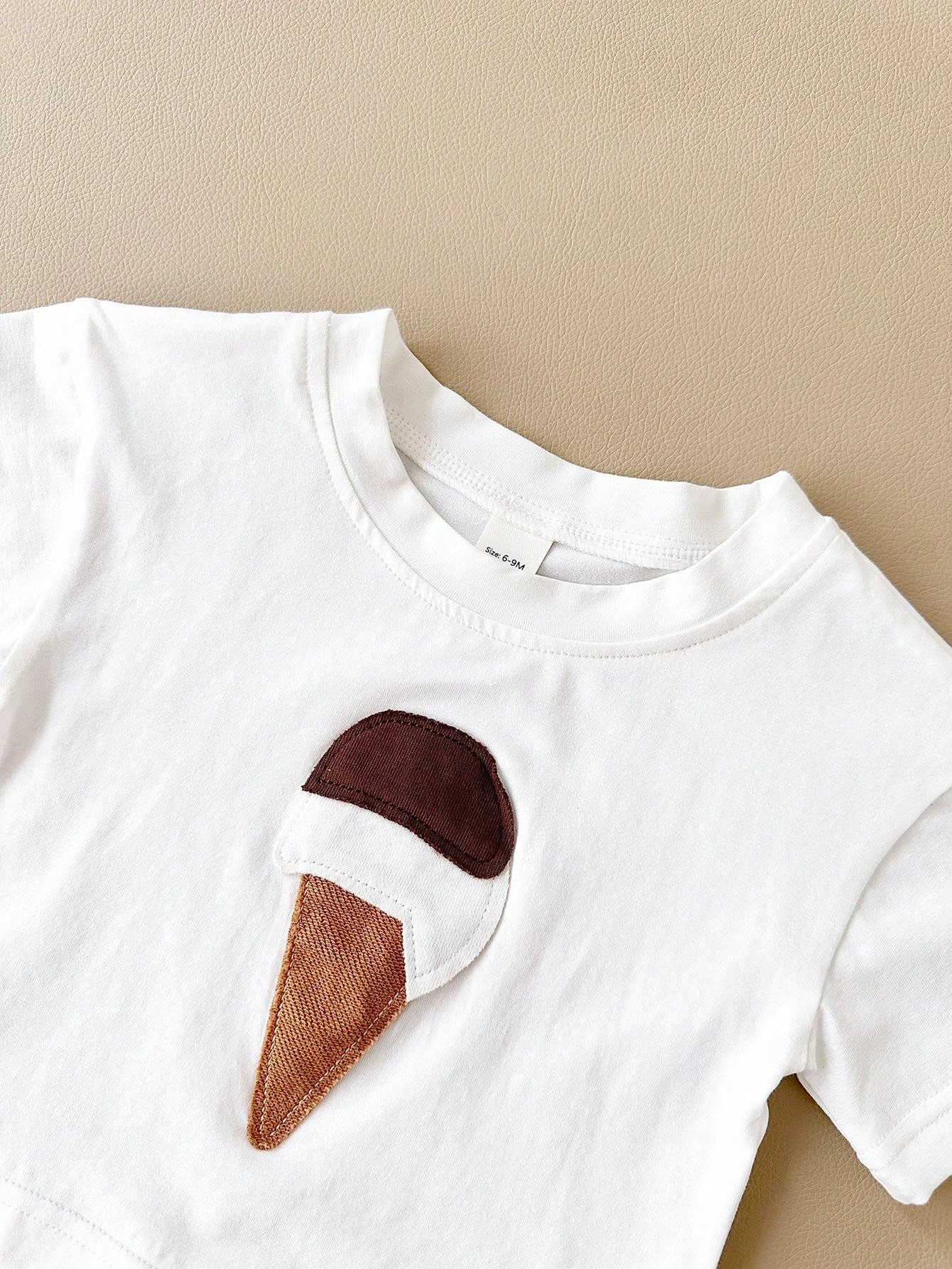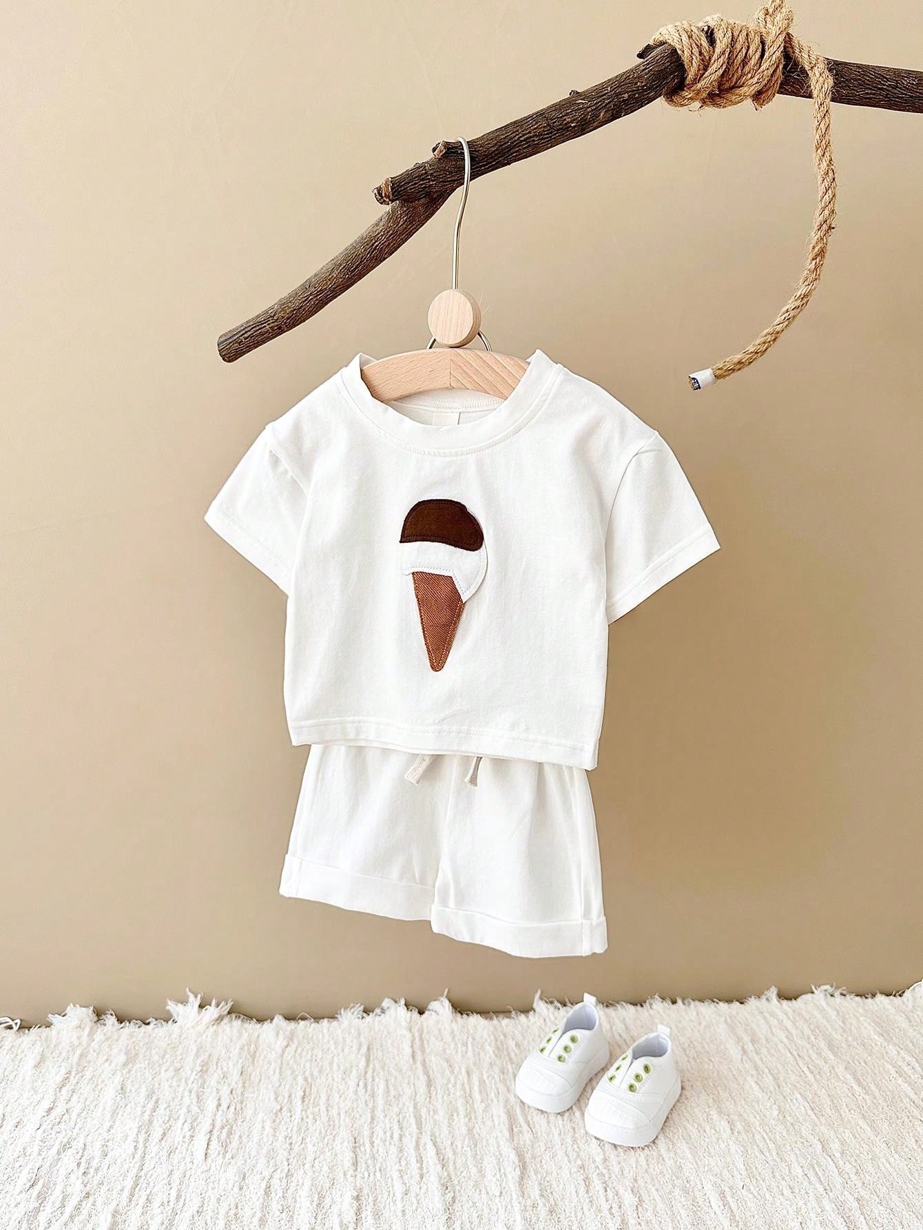 2pcs/Set Infants Casual Cartoon Ice Cream Patchwork Short Sleeve T-Shirt And Shorts Summer Outfit