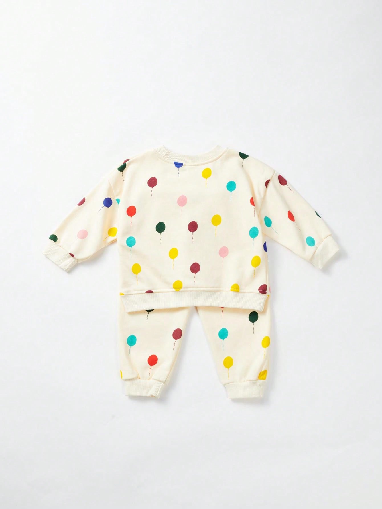 2pcs Toddler Boys/Girls Casual Dot & Balloon All-Over Print Long Sleeve Top And Pants Set, Spring/Fall