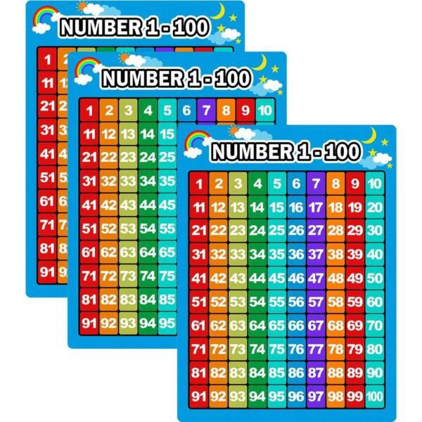 3 Pieces Number 1-100 Charts Educational Preschool Posters Learning Poster fo…