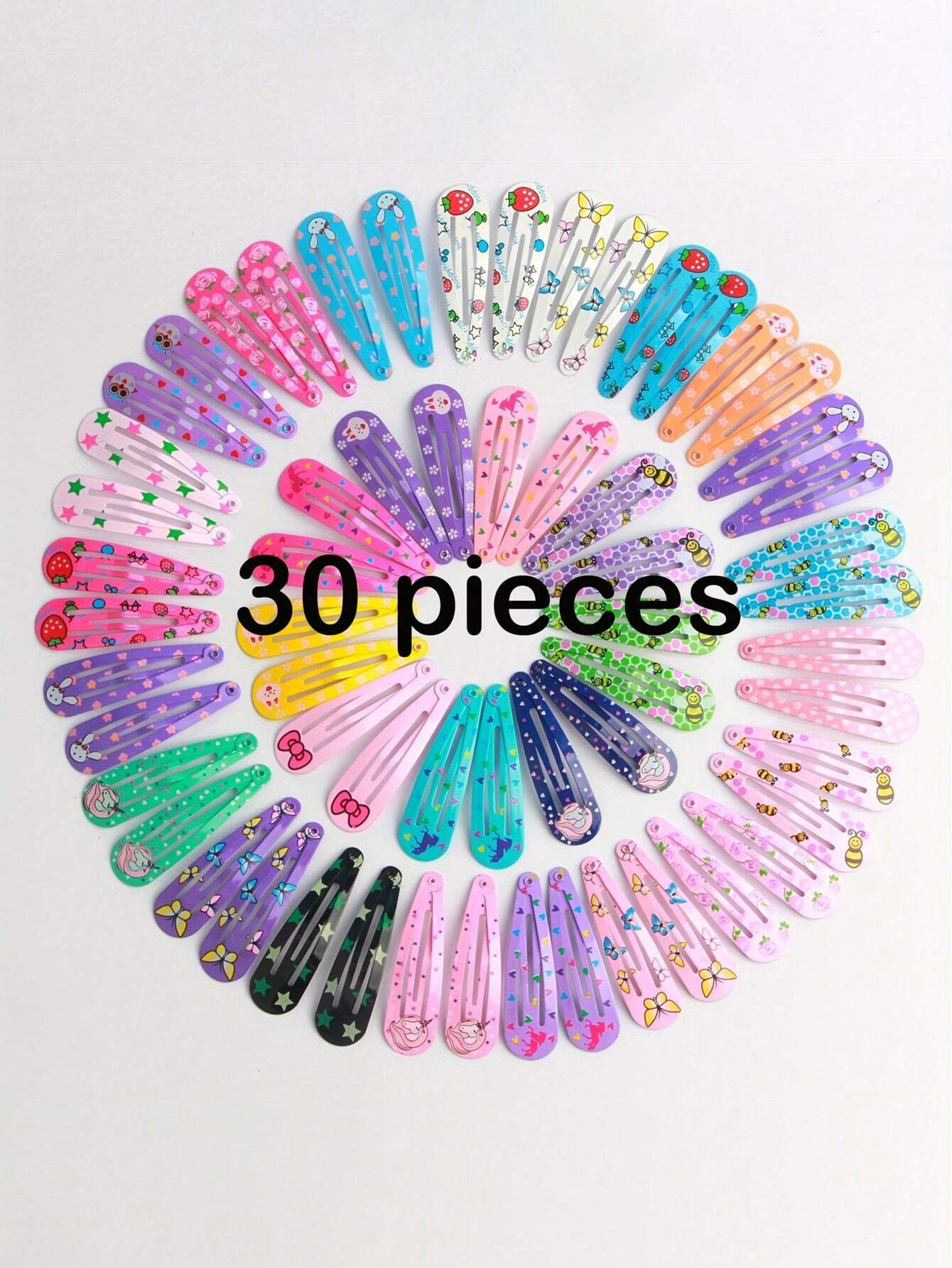 30pcs Random Color Cartoon Floral Pattern Hair Clips For Kids
