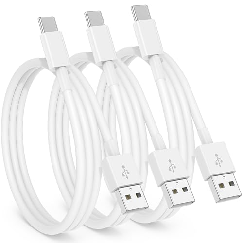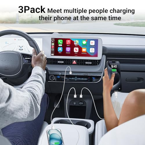 3Pack Car Carplay Cable for iPhone 16 15 Pro Max 15 Plus Car Charger, USB to USB C Cable 3FT for Car Charger Adapter, Carplay USB C Cord Accessories Charging for iPad 10th Gen/iPad Pro Air 5th-White