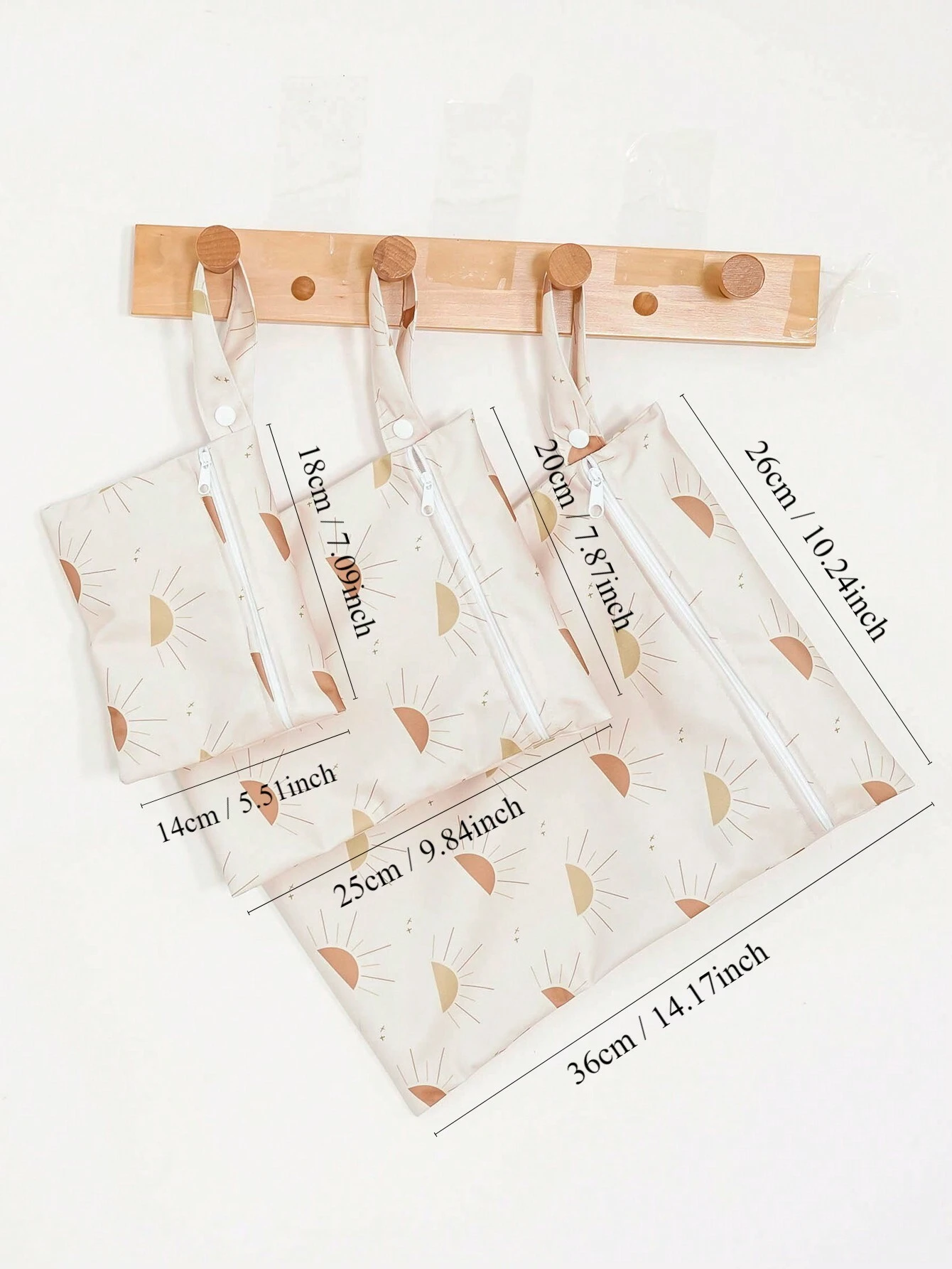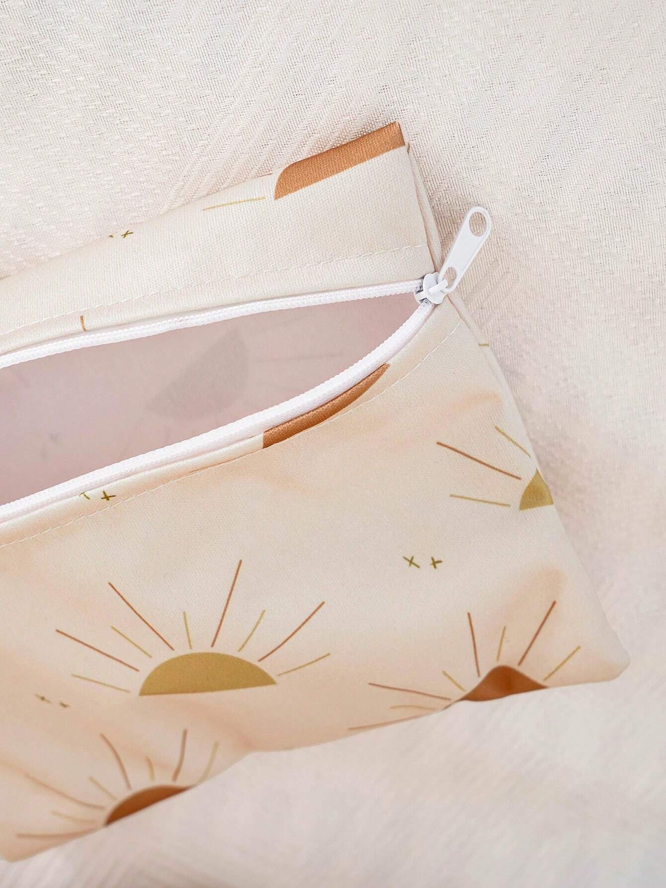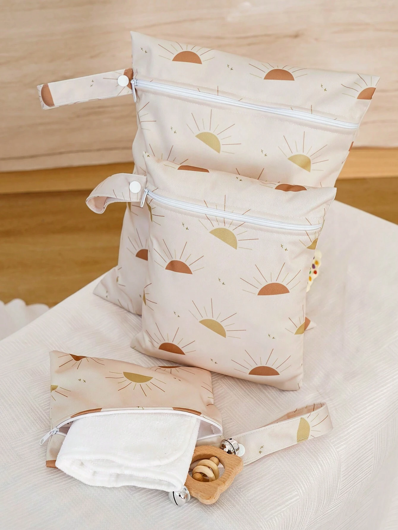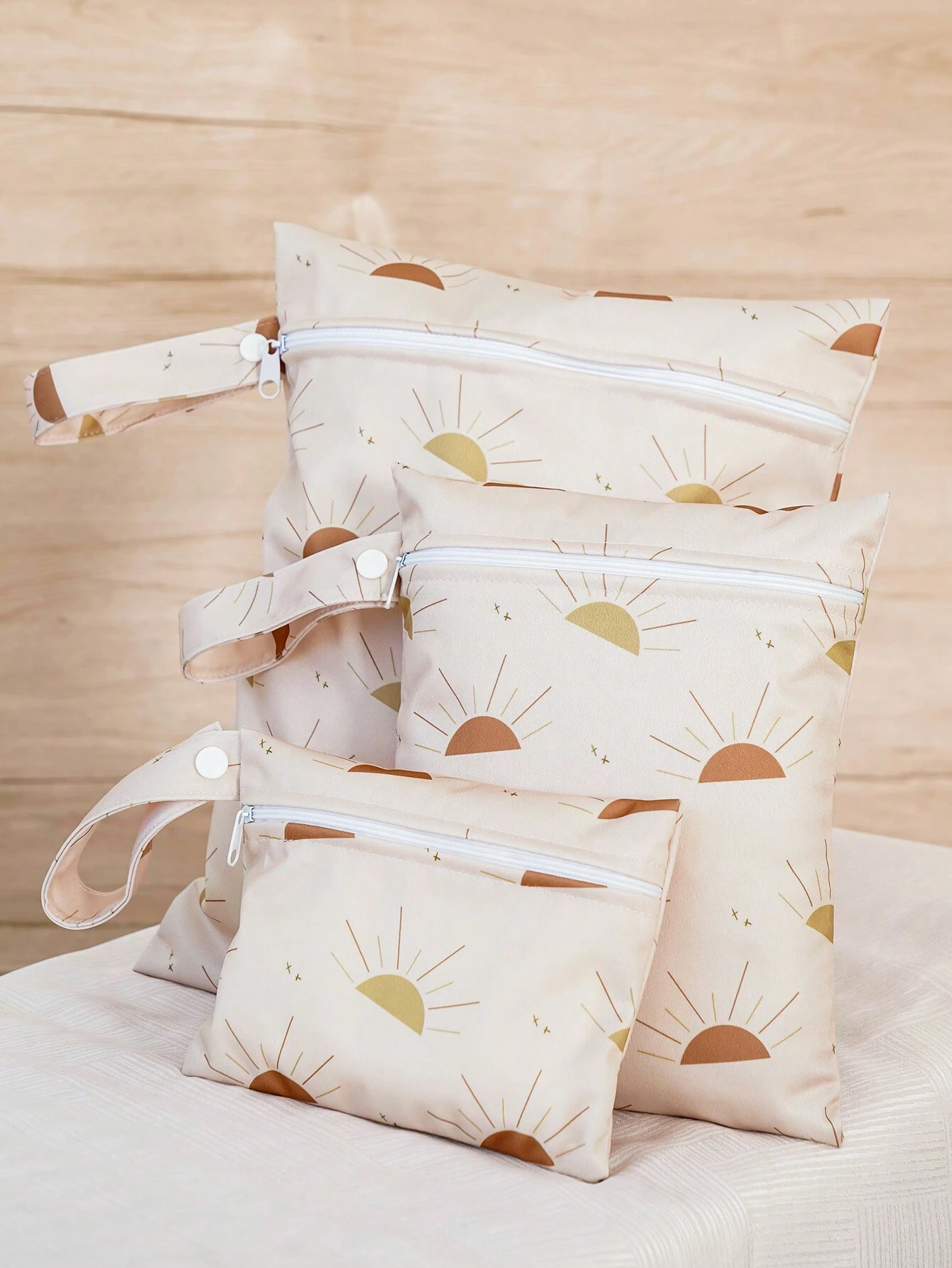 3pcs Beige Waterproof Baby Diaper Bag With Sun Pattern, Suitable For Outdoor Use