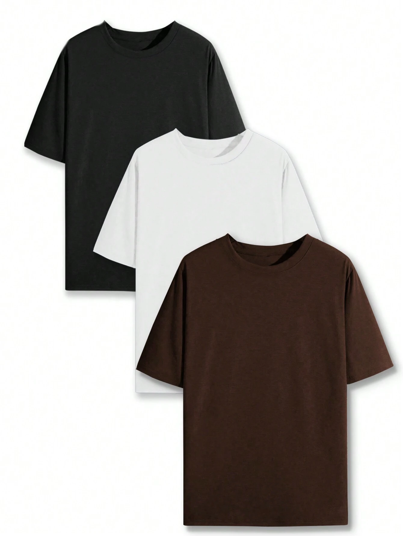3pcs Men’s Summer Letter Print Crew Neck Short Sleeve Casual T-Shirts