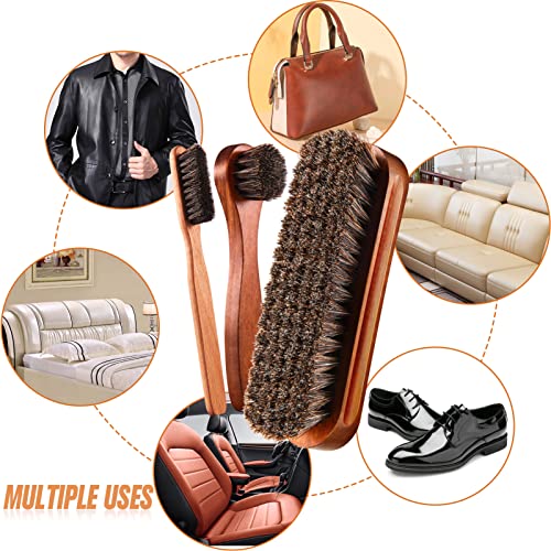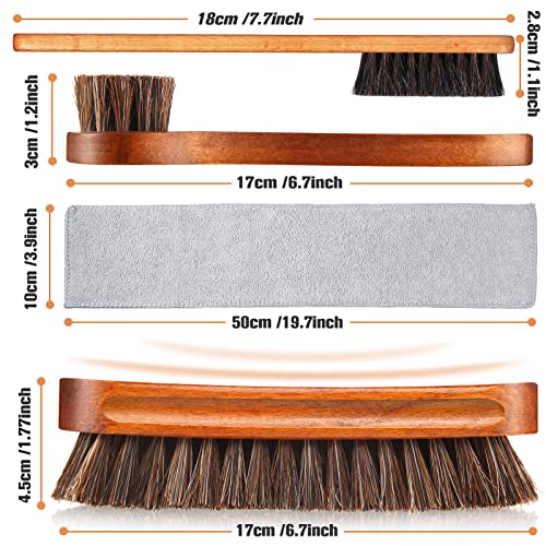 4 Pcs Horsehair Shine Shoes Brush Kit Polish Dauber Applicators Cleaning Leather Shoes Boots Care Brushes Suede Cleaner Brush with Microfiber Shoe Cloth(4 Pcs Style A)