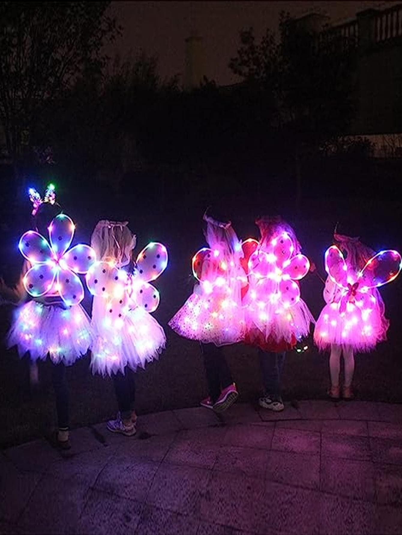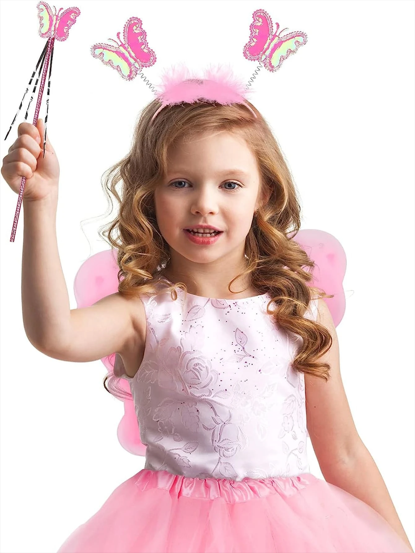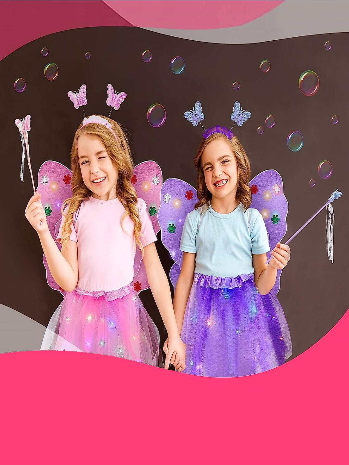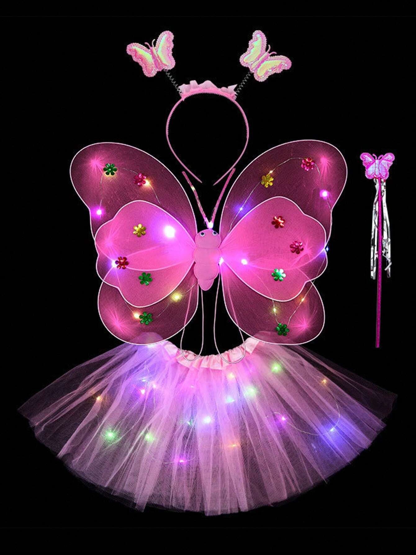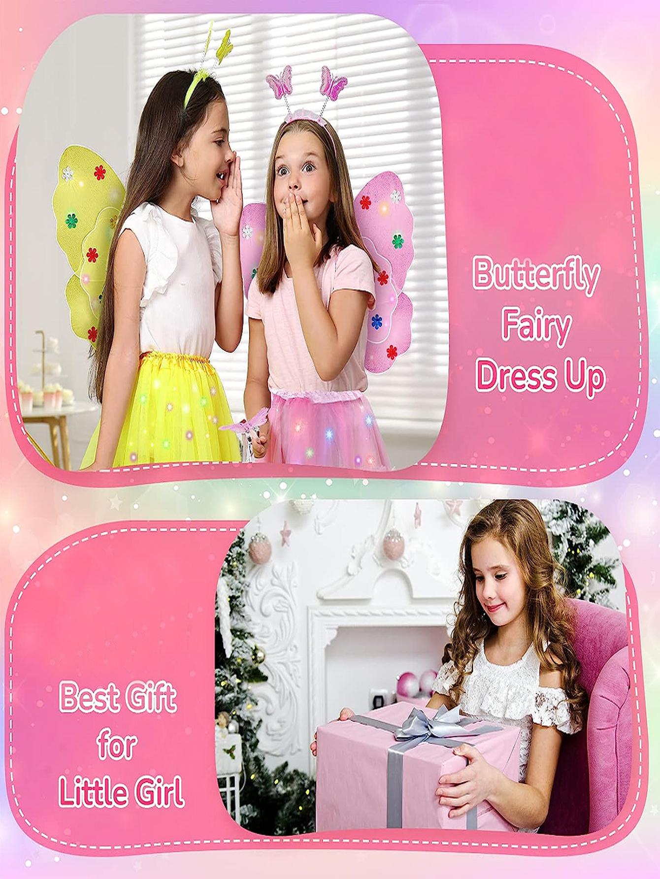 4PCS/Set Pink Glowing Butterfly Wings, Little Girl Back Decorated Children’s Flash Toys, Wonderful Fairy Magic Stick Flower Fairy Set Of Four, Including Hairpins, Fairy Stick, Wings, Dress
