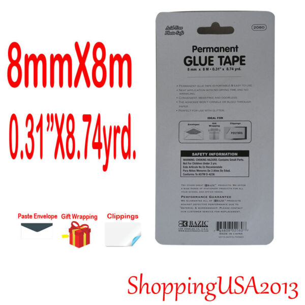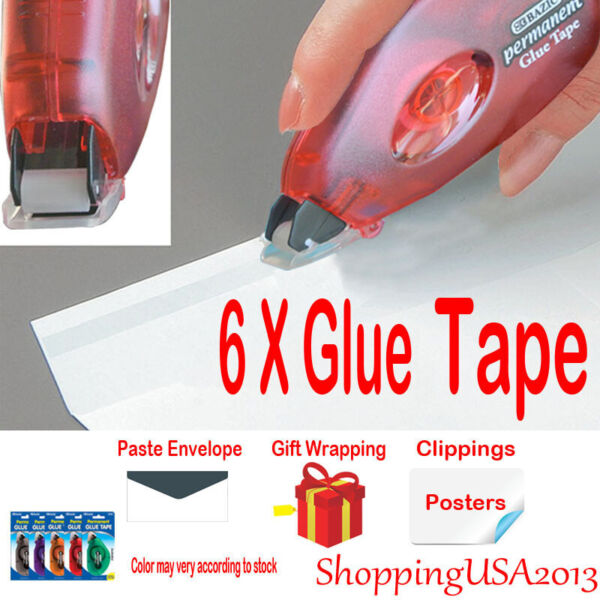 6PCs Bazic Glue Tape Adhesive Roller Permanent 0.31”X8.74 yrd. home office Paste