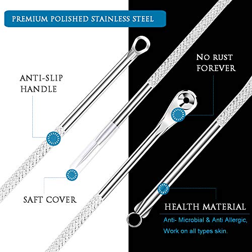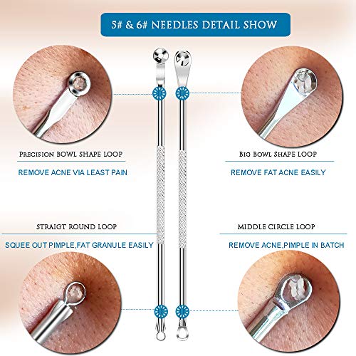 6PCS Dual Heads Blackhead Remover, Pimple Comedone Extractor, Acne Whitehead Blemish Removal Kit, Premium Stainless Steel, Risk Free for Face Skin, with Portable Box
