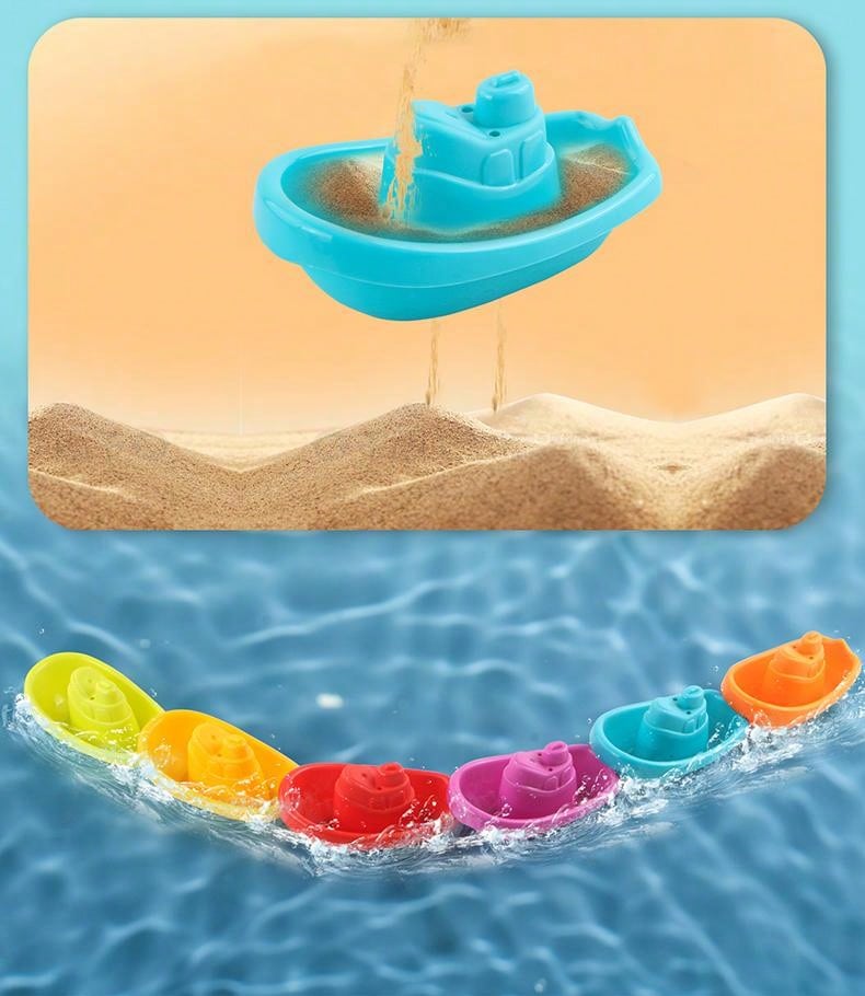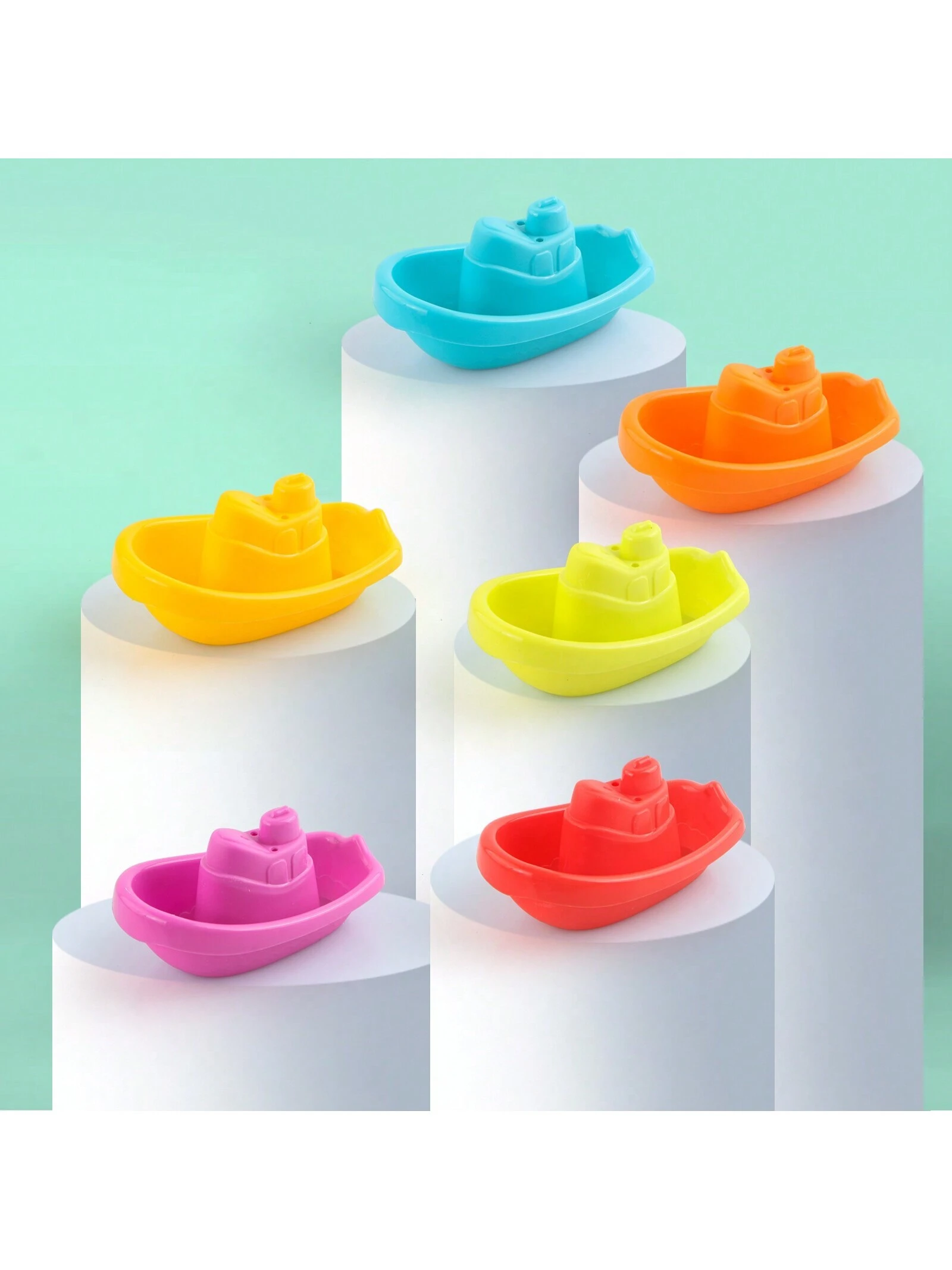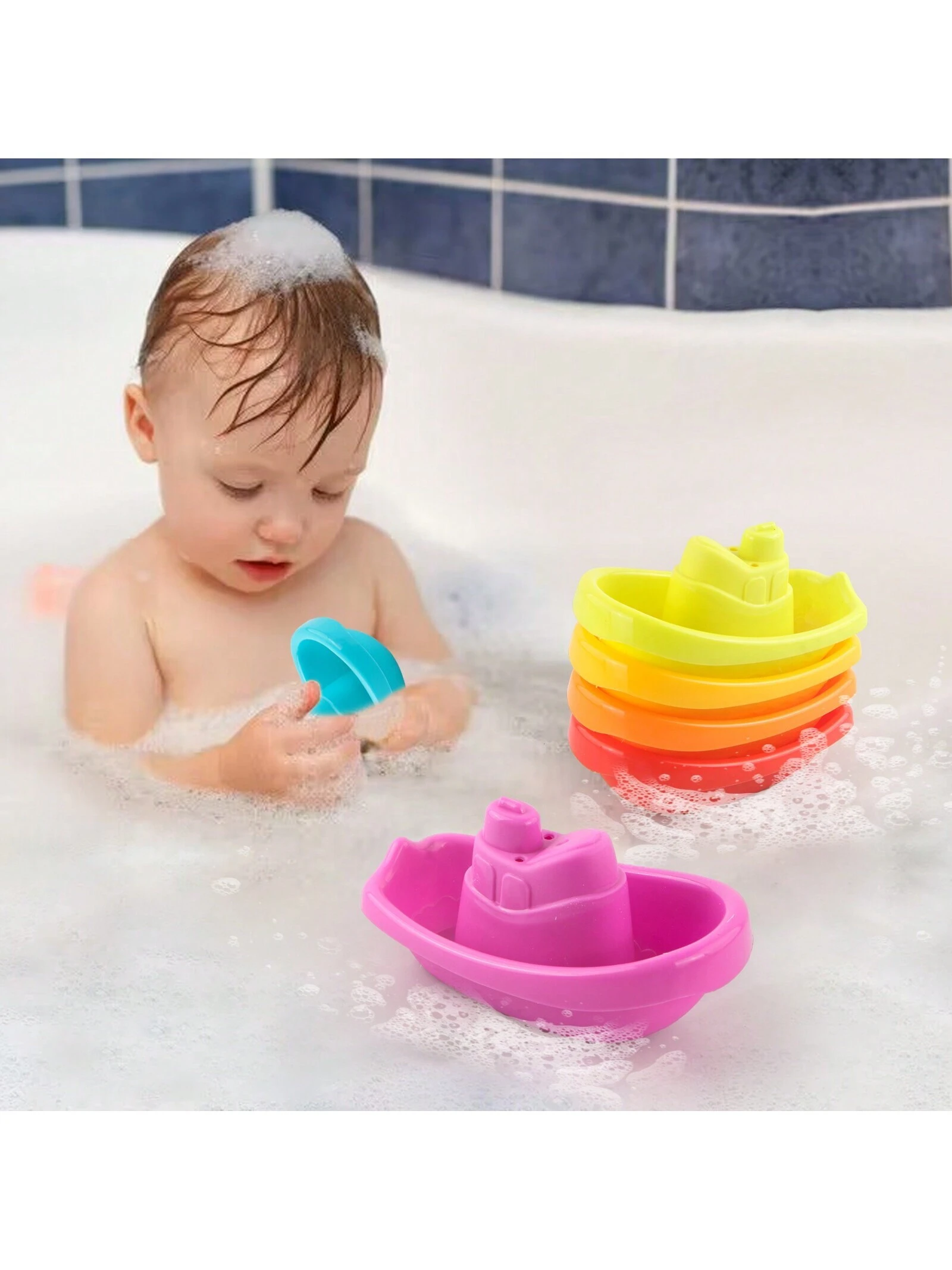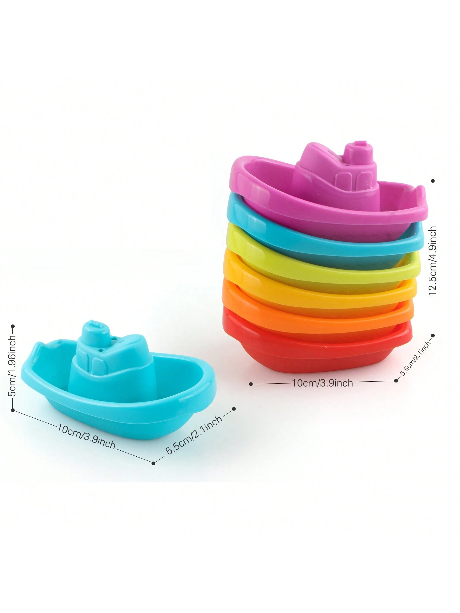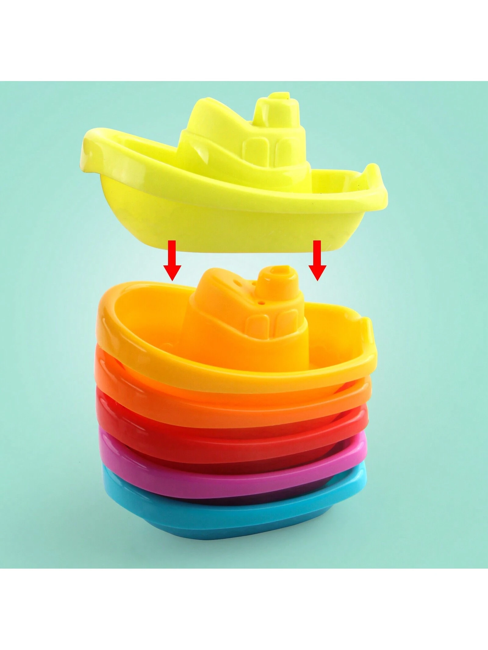 6pcs/Set Colorful Stacking Rainbow Ship & Cup Bath Toys, Educational Puzzle Toys For Baby Bathtub Play