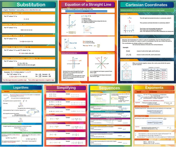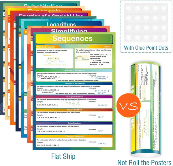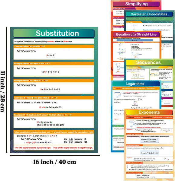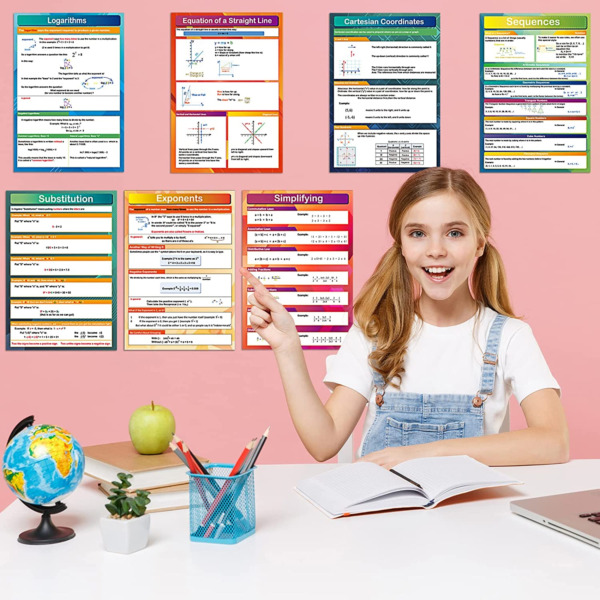 7 Pieces Math Algebra Posters Educational Math Classroom Decor for Middle School