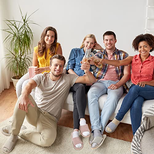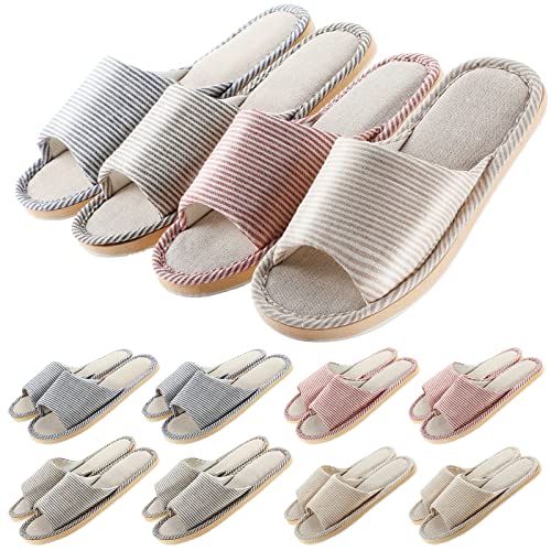 8 Pairs Disposable House Slipper for Guests Open Toe Breathable Slippers Spa Slippers Comfortable Indoor Home Slippers (Red, Beige, Navy, Coffee, Pinstripe)