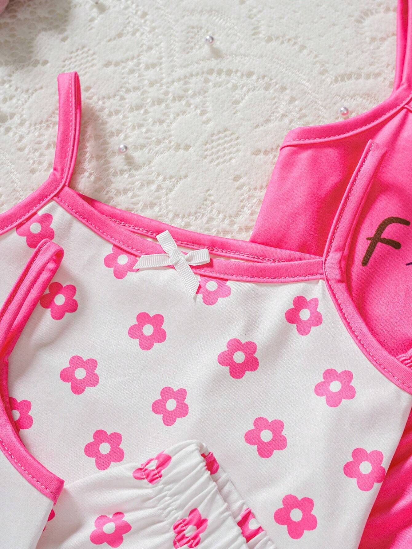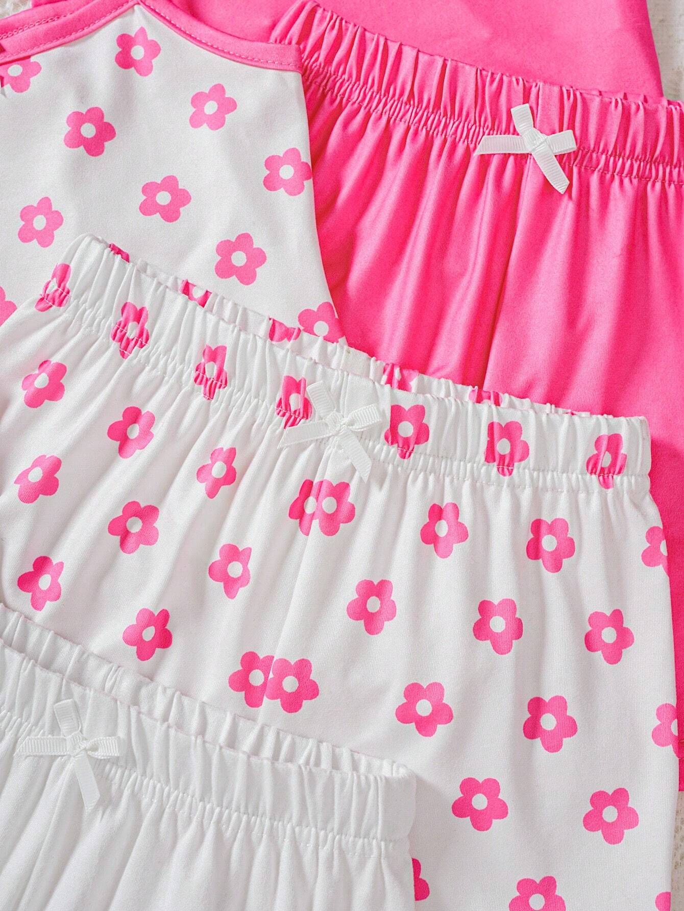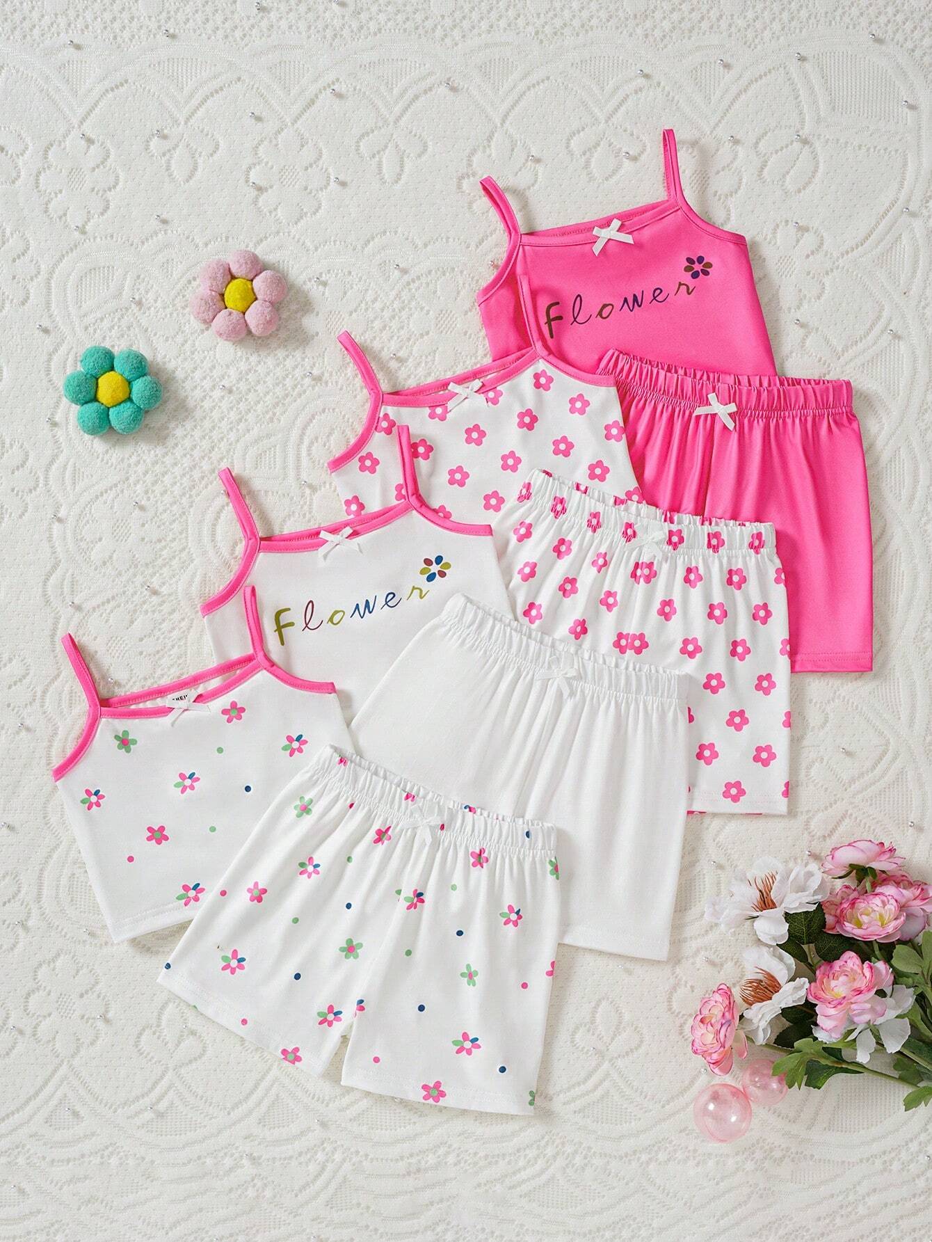 8pcs Baby Girls’ Comfortable And Fun Floral Camisole Top And Shorts Set For Spring/Summer, Suitable For Home And Outdoors
