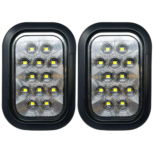 All Star Truck Parts 5×3 2x White Rectangle 12 LED Backup/Reverse/Tail Light Tow Truck Semi Trailer CM Flatbed Reading Postal Hitch Mounted RV Bus Grommet 3 Wire Pigtail Plug Kit 12V IP67 Waterproof