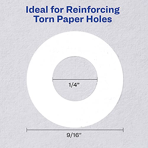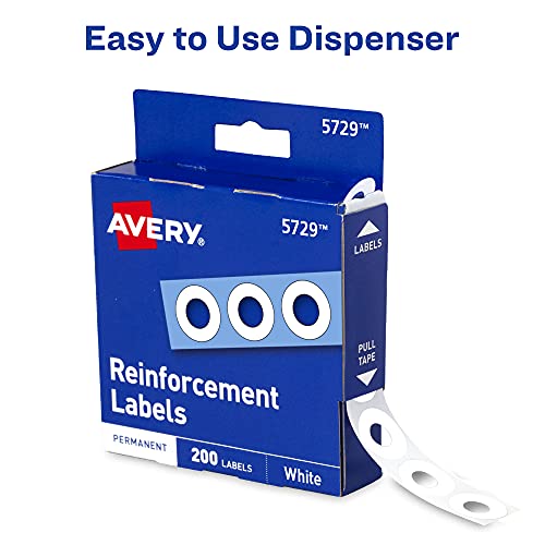 Avery Self-Adhesive Hole Reinforcement Stickers, 1/4″ Diameter Hole Punch Reinforcement Labels, White, Non-Printable, 200 Labels Total (5729)