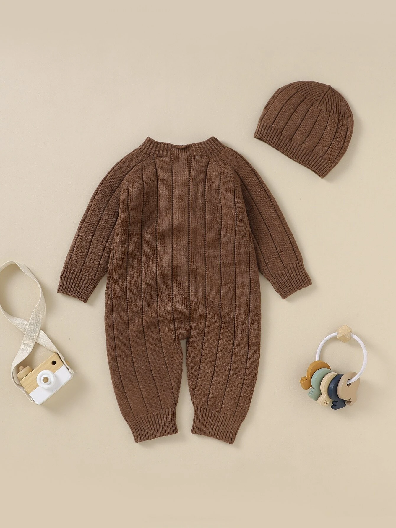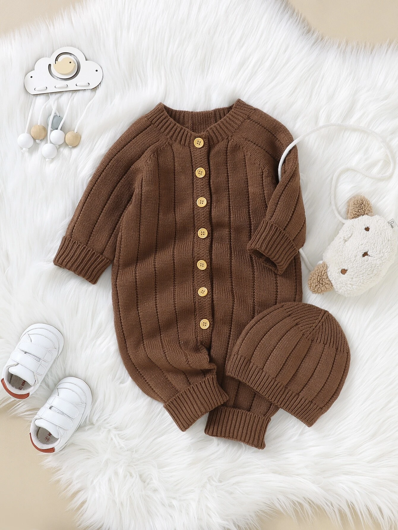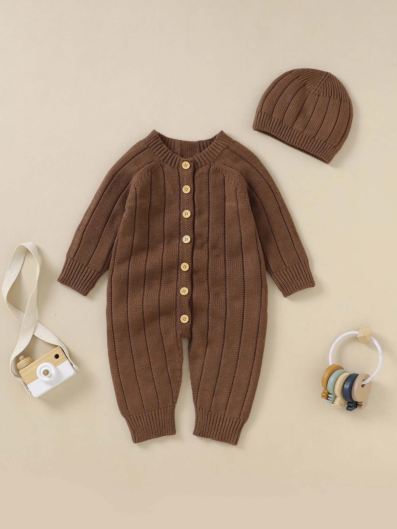 Baby Boy Button Front Raglan Sleeve Knit Jumpsuit & Hat