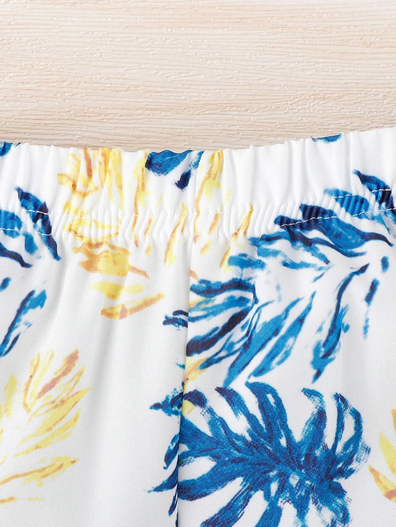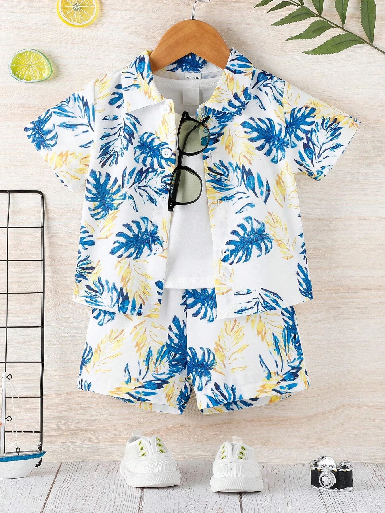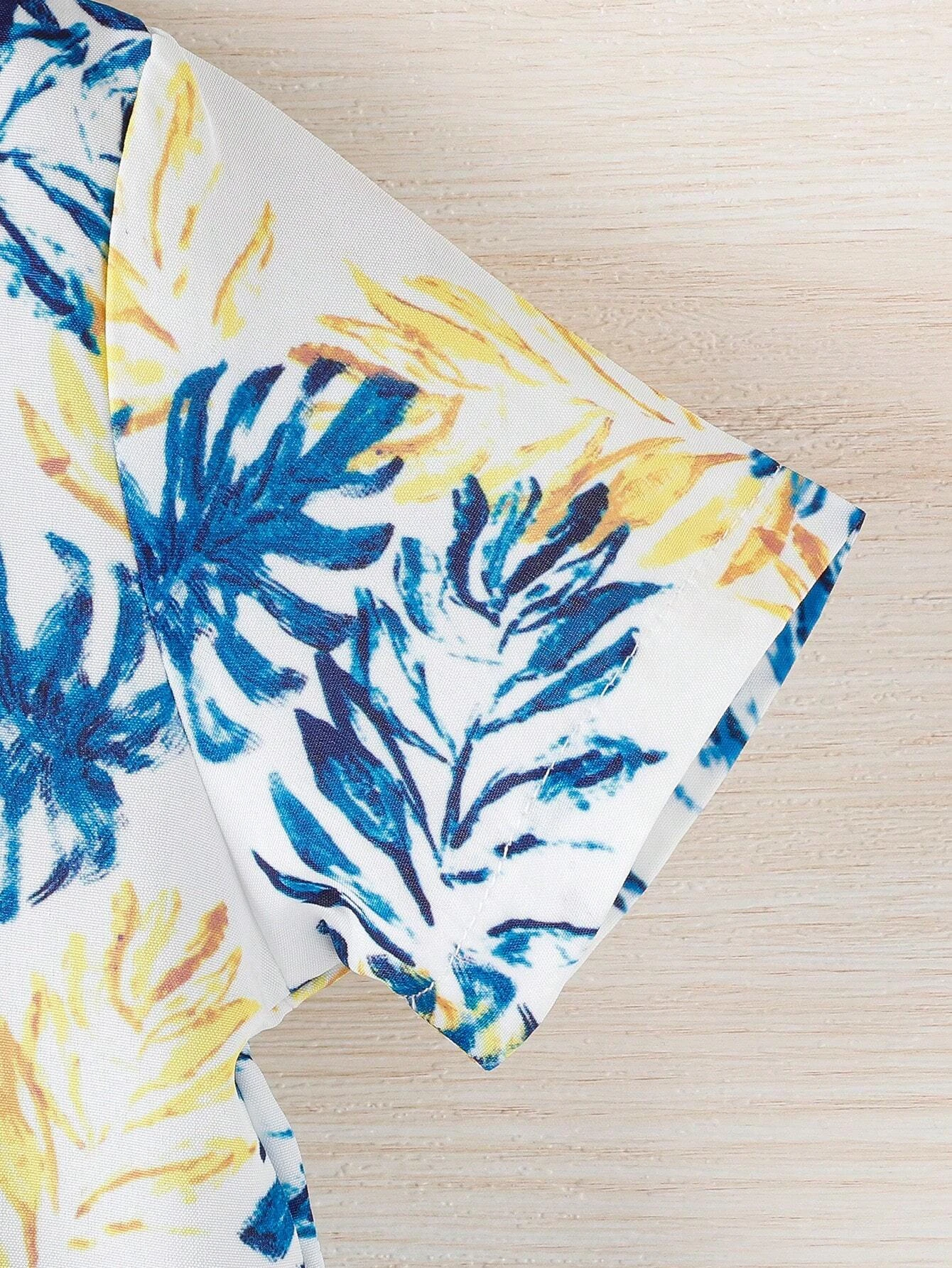 Baby Boy Tropical Plant Patterned Short Sleeve Shirt And Shorts Vacation Outfit