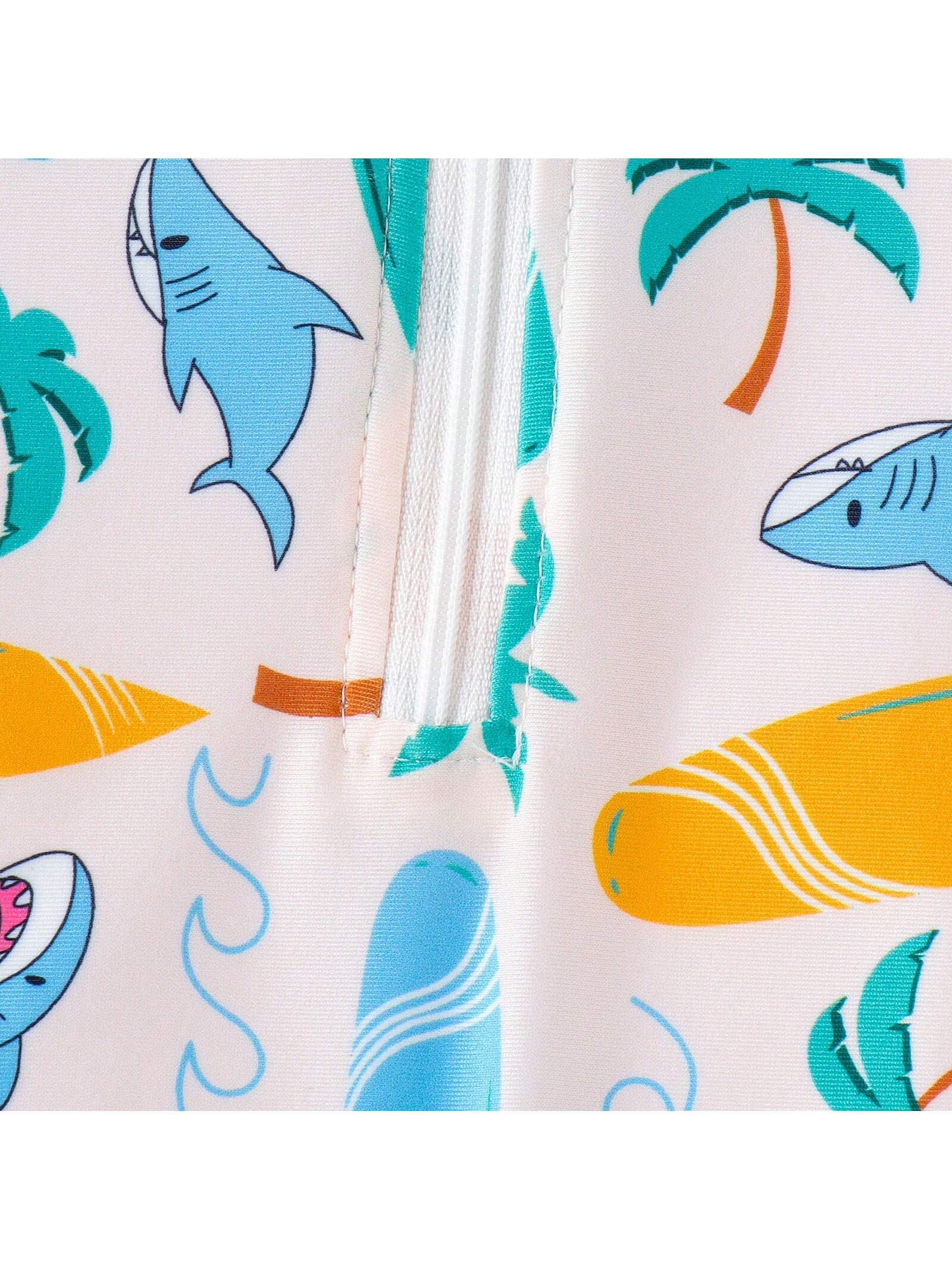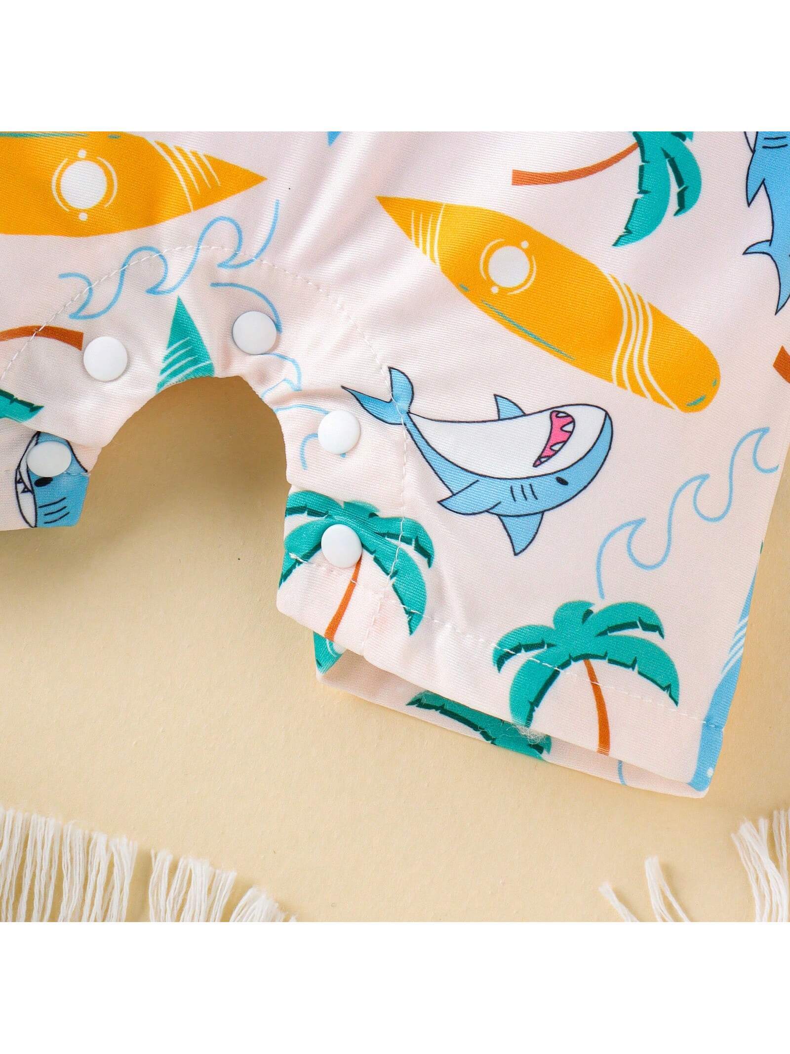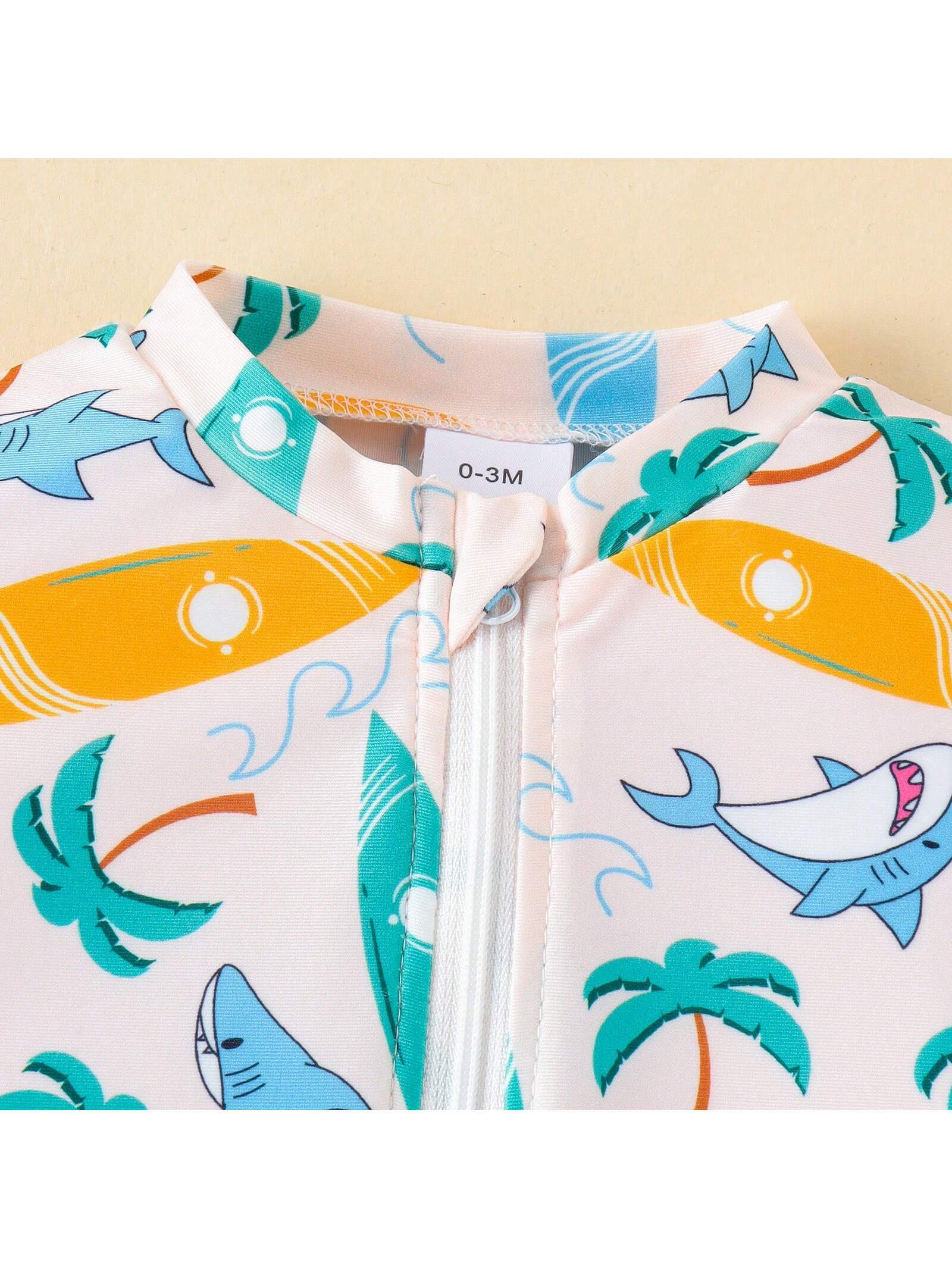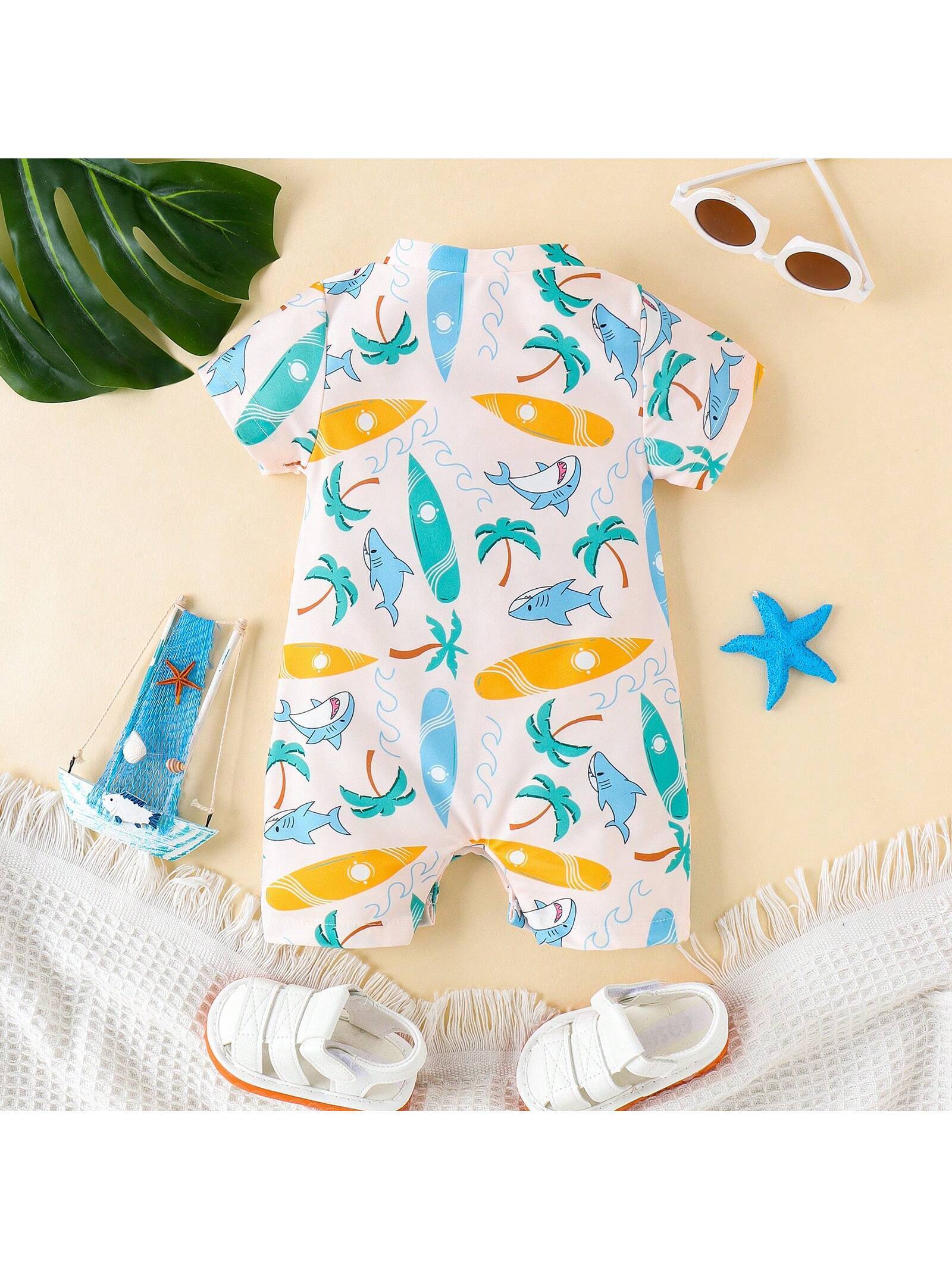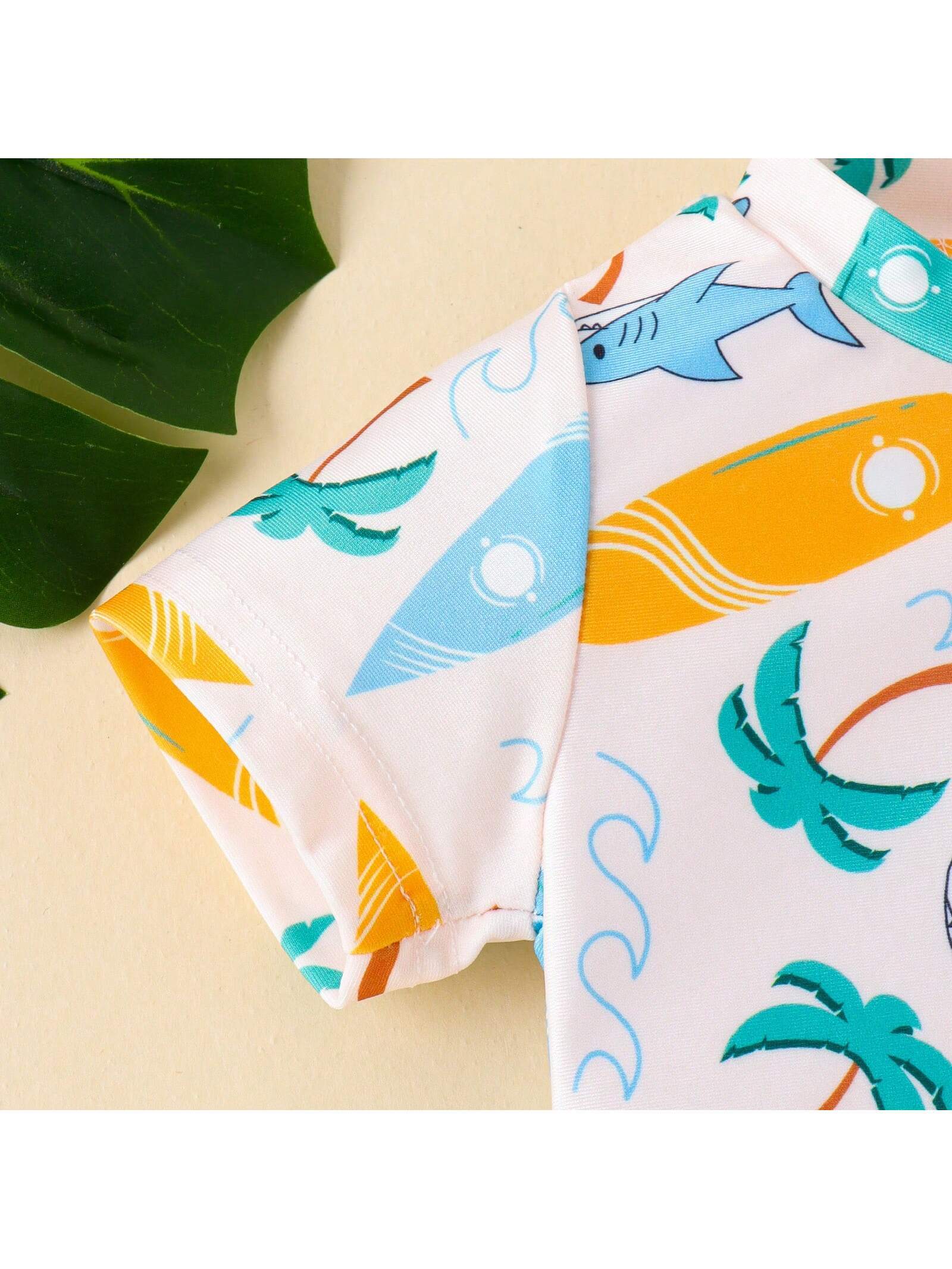 Baby Boys’ Cute Animal Printed Short Sleeve Lightweight Swimsuit With Shorts For Summer