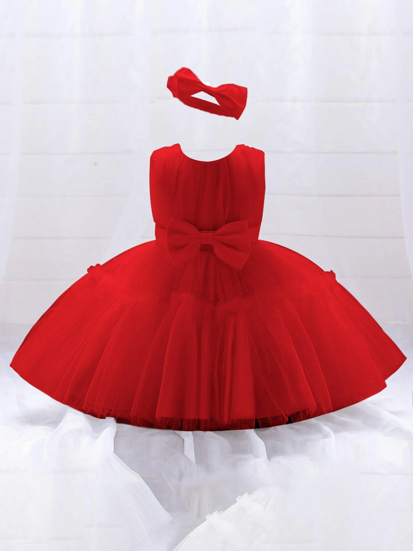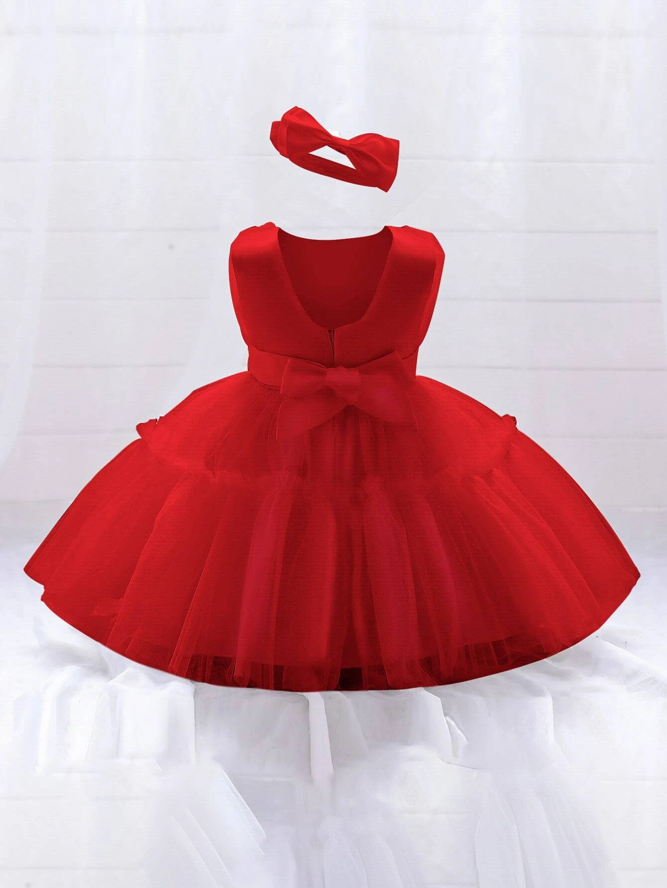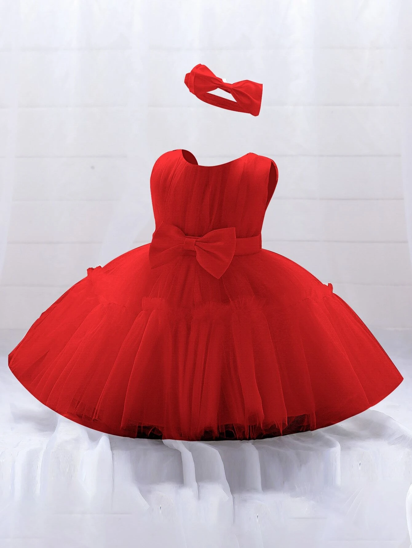Baby Girl Princess Dress With Puff Skirt And Hair Accessories For 1st Birthday Party Or Other Occasions