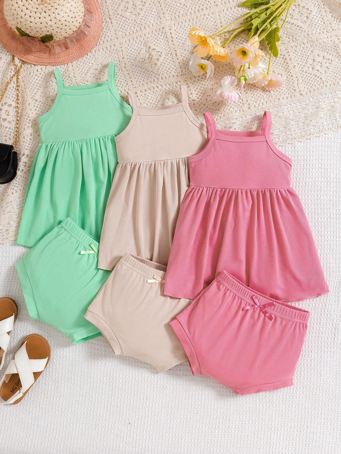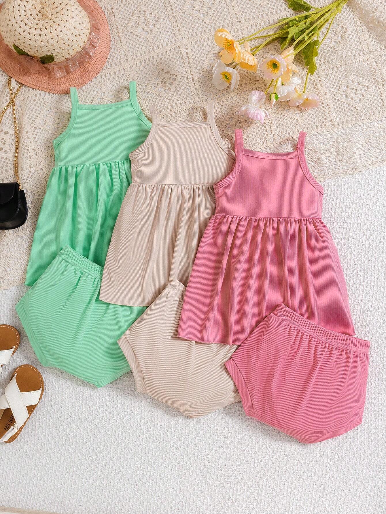 Baby Girl Skin-Friendly Soft Cute And Fashionable 3pcs Set Of Camisoles And Shorts