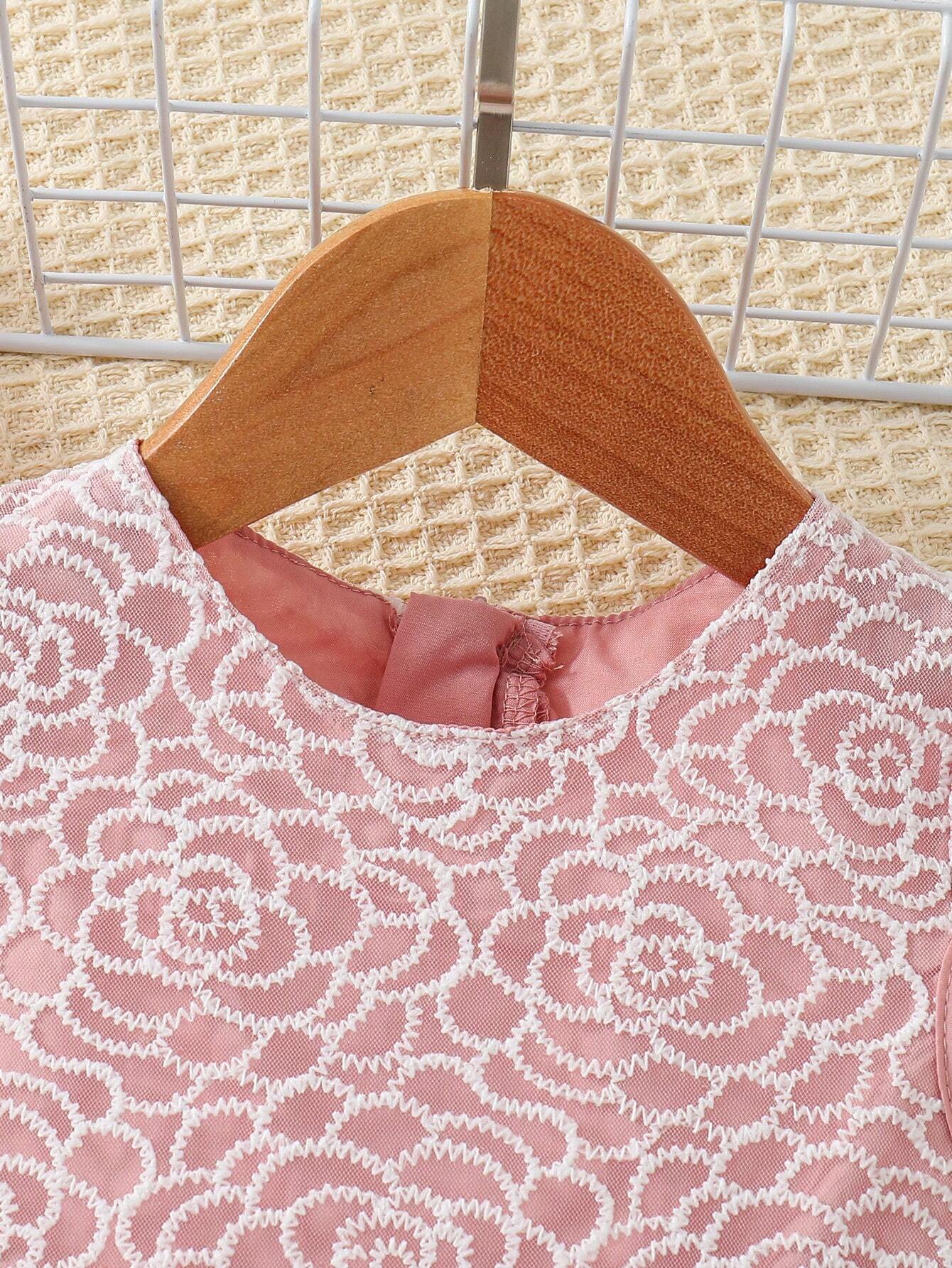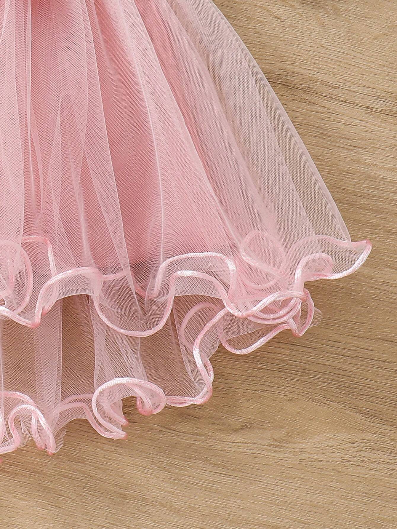 Baby Girl Spring & Summer Pattern Embroidery Mesh Stitching Front Short And Back Long Dress