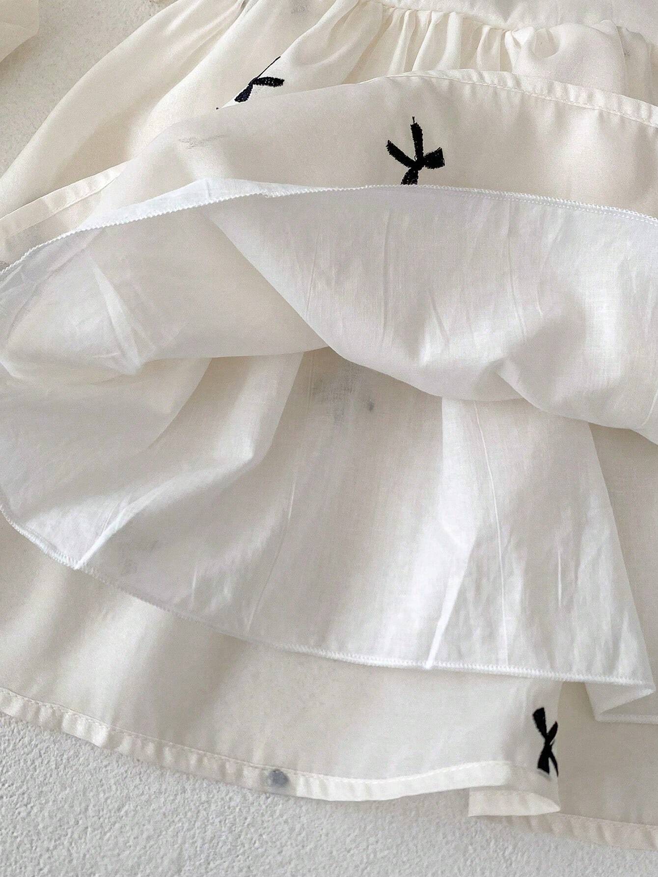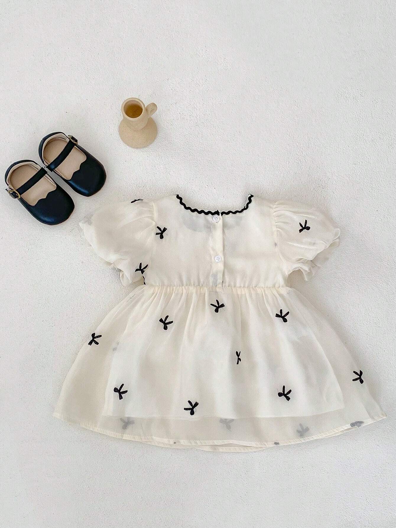 Baby Girls’ Lace Collar Yarn Short Sleeve Embroidered Princess Dress, Summer