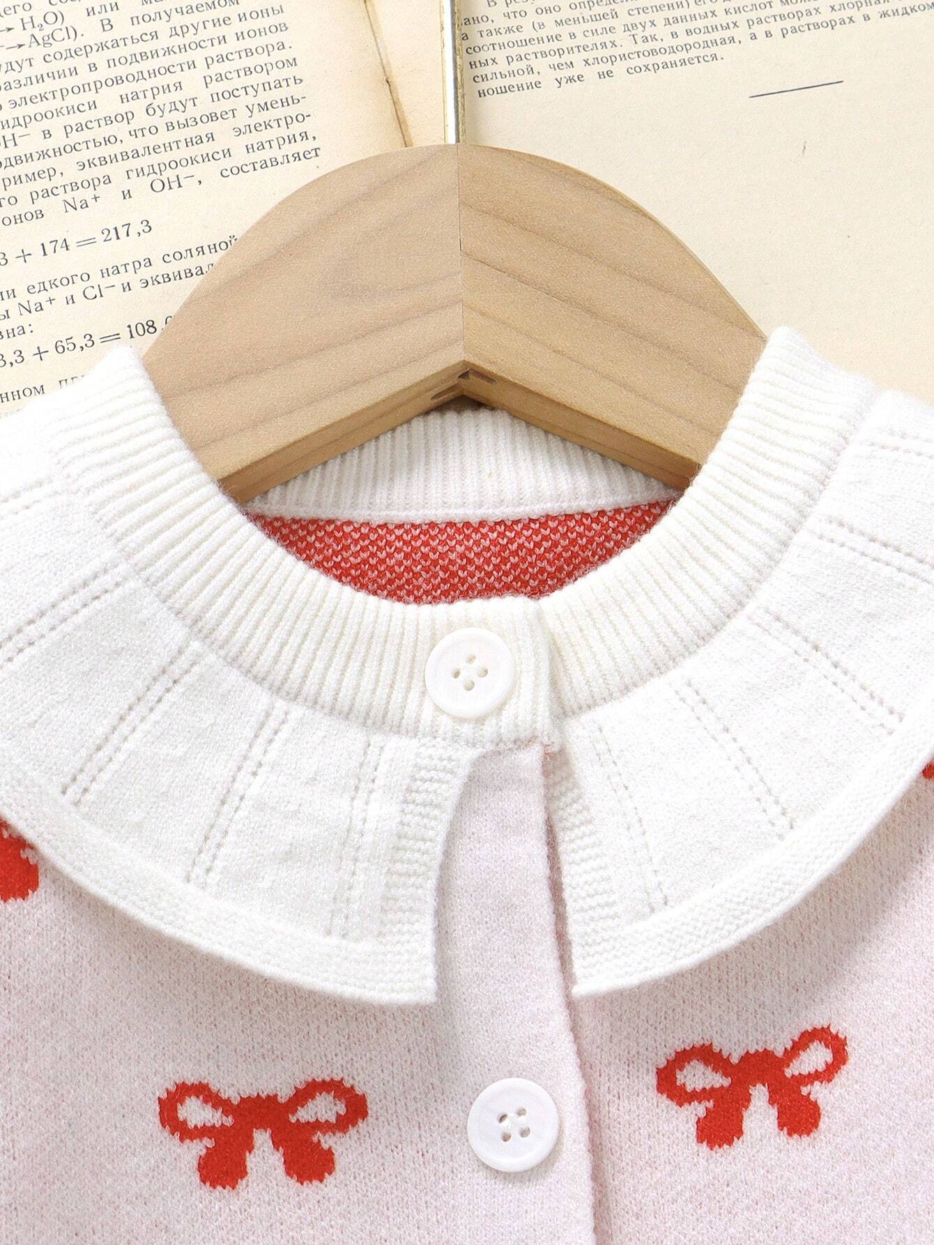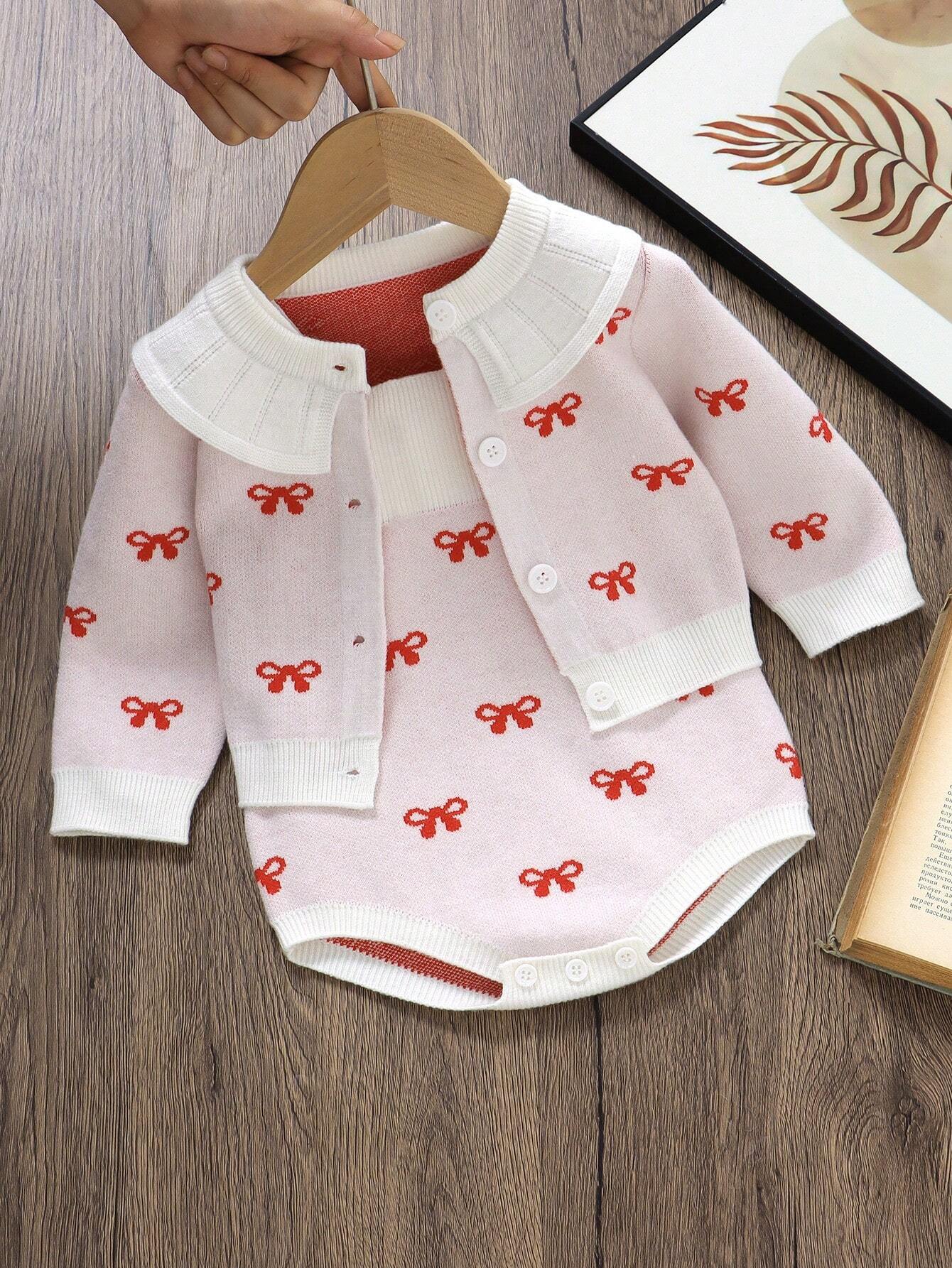 Baby Girls’ Peter Pan Collar Jacket With Bowknot Bodysuit Set, Long Sleeve & Sleeveless, 2pcs/Set