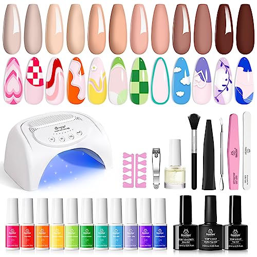 Beetles Neutral Brown Nude Color Gel Polish Starter Kit with Nail Lamp Base Top Coat & Rainbow Pastel Nail Art Liner Gel Set Paint Swirl Nails Bright Girly Color Soak Off Led Lamp Manicure DIY Salon