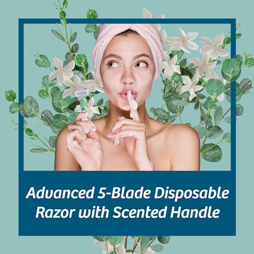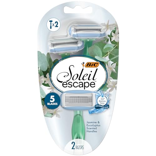 BIC Soleil Escape Women's Disposable Razors With 5 Blades for a Sensorial Experience and Comfortable Shave, Pack of Jasmine & Eucalyptus Scented Handle Shaving Razors for Women, 2 Count