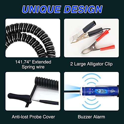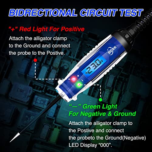 BOAK Automotive Test Light,3-60V DC Bidirectional Voltage Circuit Tester with Voltage Display&Illumination,Fuse Tester with Voltmeter,Electric Test Pen,Continuity Test.