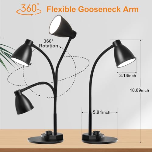 BOHON LED Desk Lamp with USB Charging Port 3 Color Modes Dimmable Reading Light Intelligent Induction Auto Dimming Task Lamp Flexible Gooseneck Table Lamp for Bedside Office, AC Adapter Include