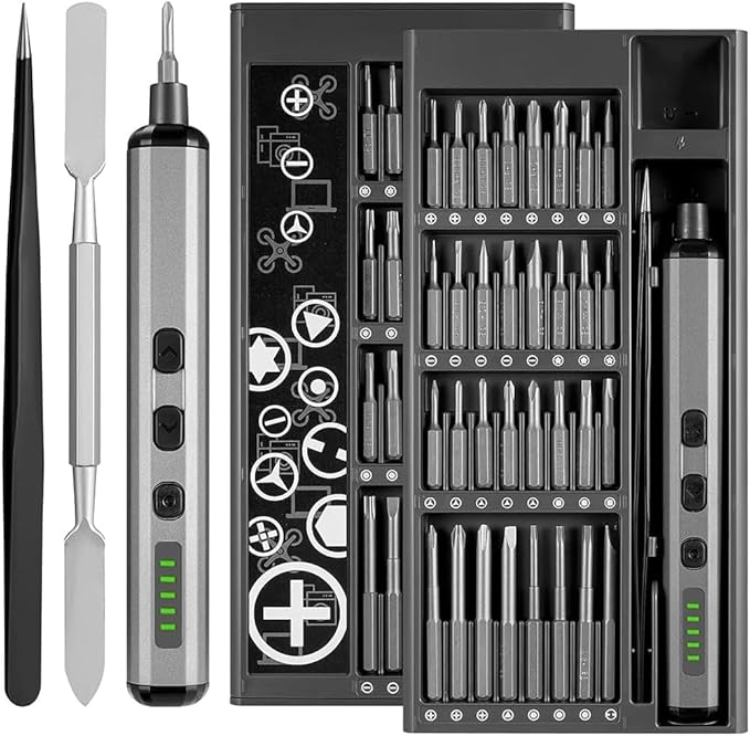BYKVORL 69-in-1 Cordless Precision Electric Screwdriver Kit with 64 Magnetic S2-Steel Bits,5 Torque Settings, 4 LED Lights,Rechargeable Screwdriver Repair Tool for Phone Camera Laptop Watch