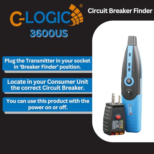 C-LOGIC 3600US Circuit Breaker Finder and Plug Socket Tester with GFCI u2013 Dual Function Electrical Outlet Tester and Fuse Locator with LED Indicators (US Plug)