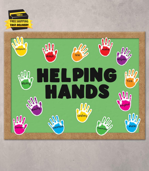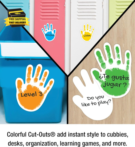 Carson Dellosa 42 Colorful Helping Hands Bulletin Board Cutouts, Vibrant Hand Cu