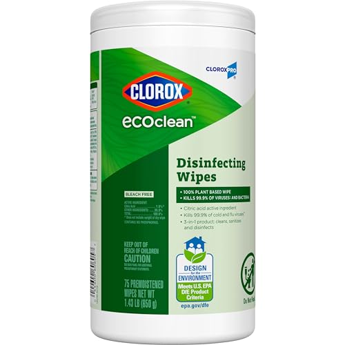 CloroxPro Clorox EcoClean Disinfecting Wipes, Multipurpose 100% Plant Based Cleaning Cloths, Antibacterial Disinfectant, Safe for Multi Surface Use, 75 Count