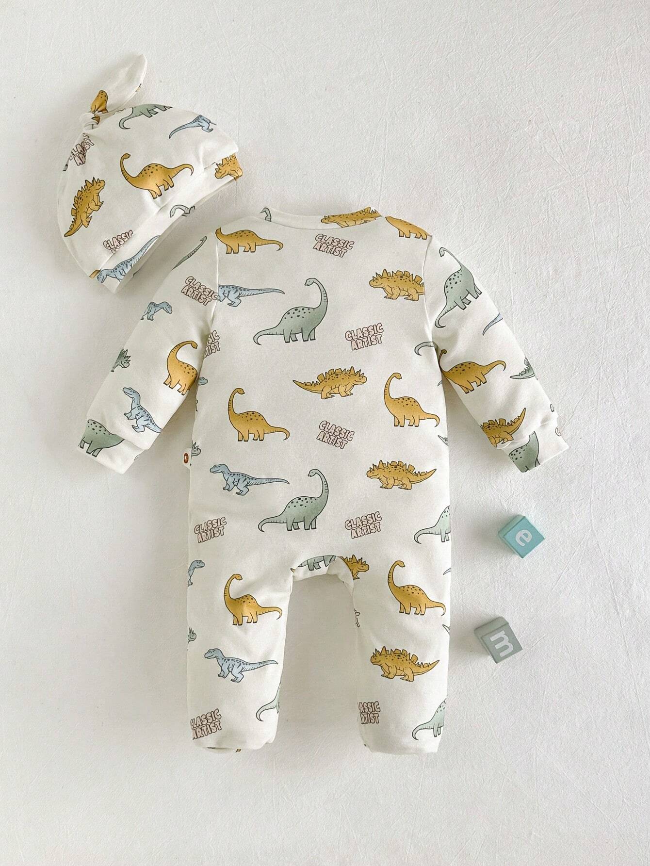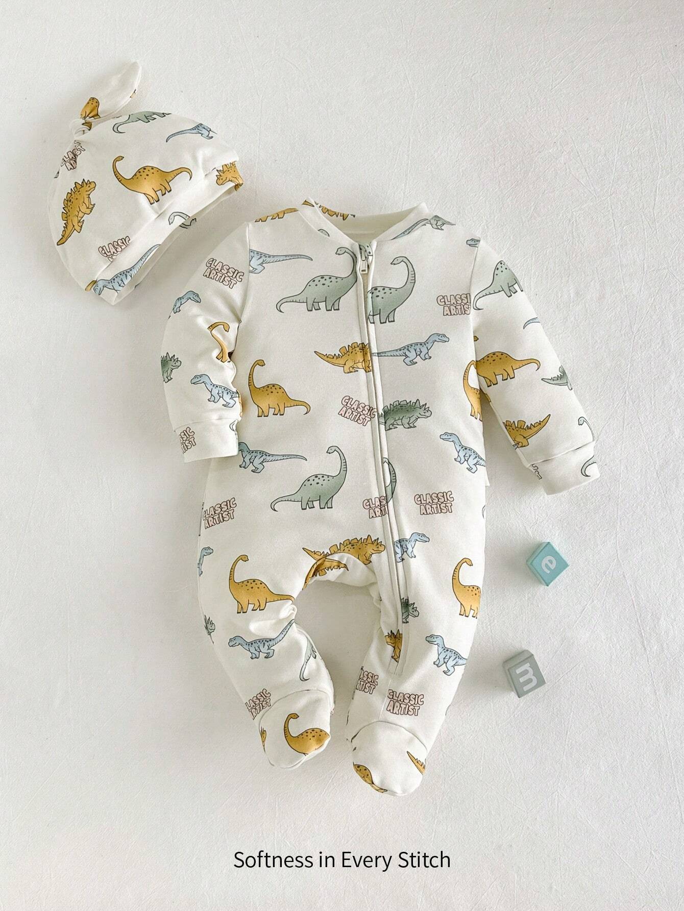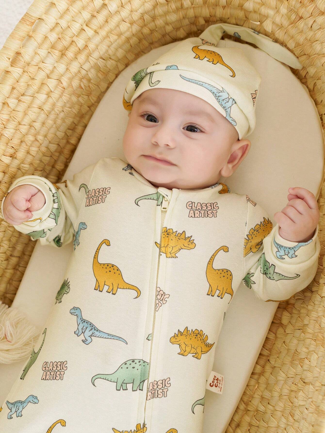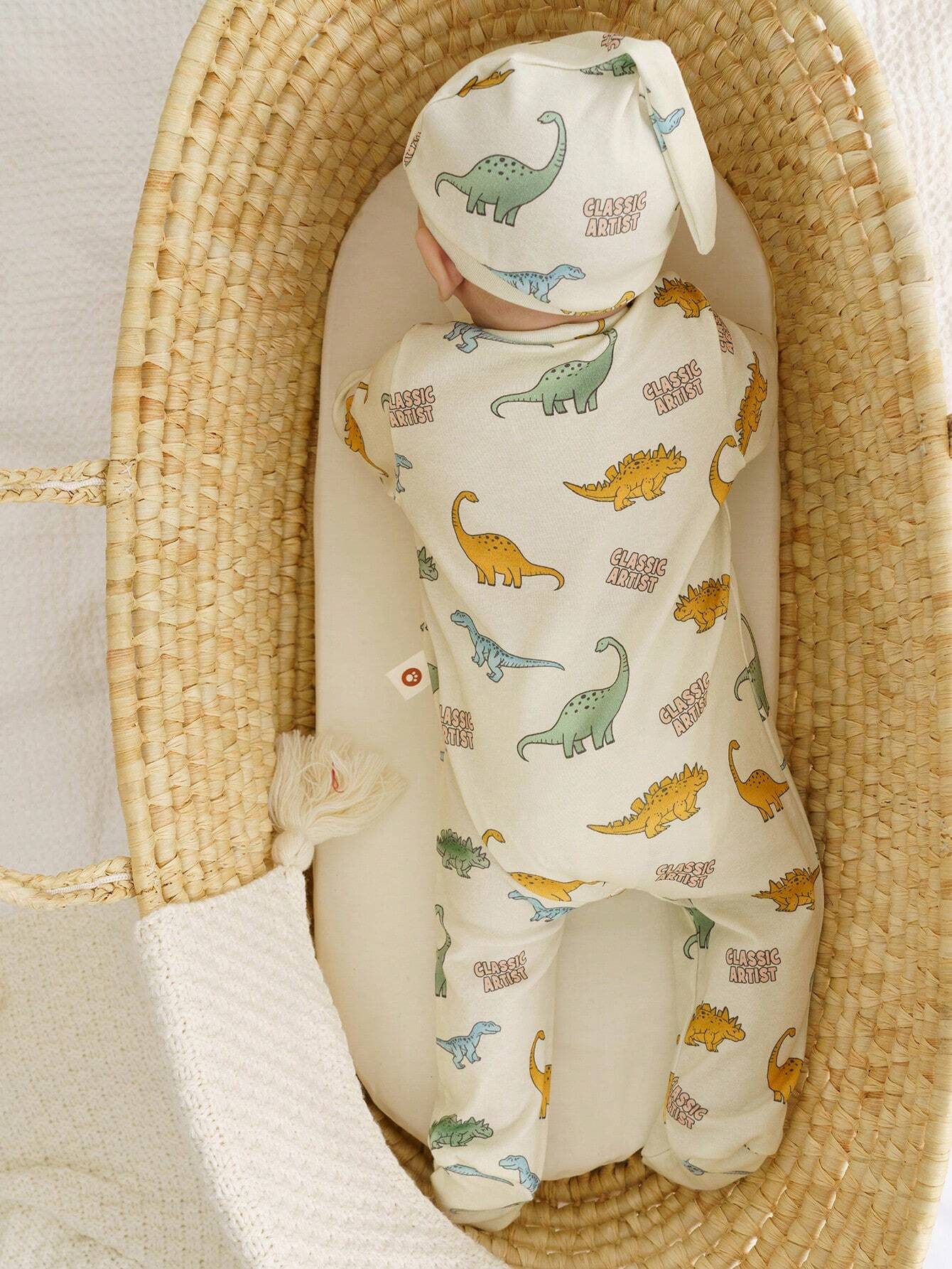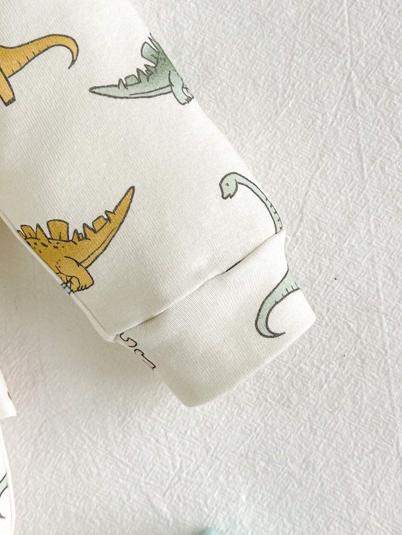 Cozy Pixies Newborn Baby Boy Cartoon Dinosaur Pattern Knitted Soft Round Neck Short Sleeve Top And Shorts Set