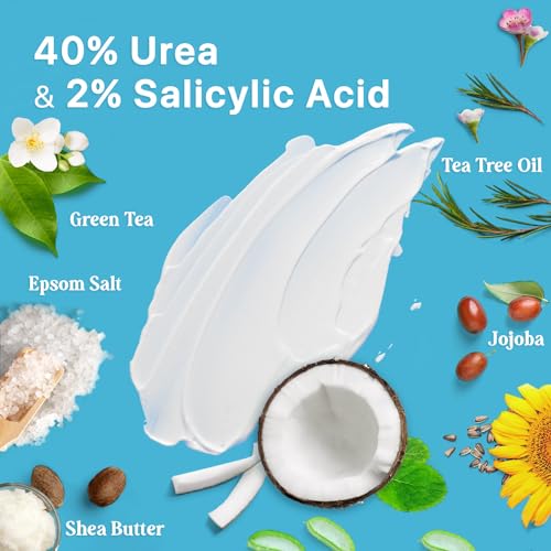 Ebanel Urea Cream 40% plus Salicylic Acid 2%, Foot Cream for Dry Cracked Heels Feet Knees Elbows Hands, Foot Dead Skin Cuticle Callus Remover Toenail Softener, Keratolytic Skin Barrier Repair Cream