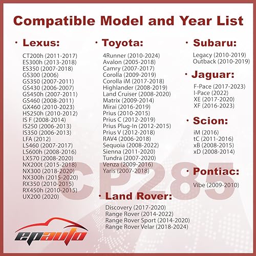 Excellent quality.Suitable for Toyota Camry 2008.I’m buying it for the second time