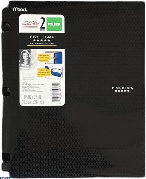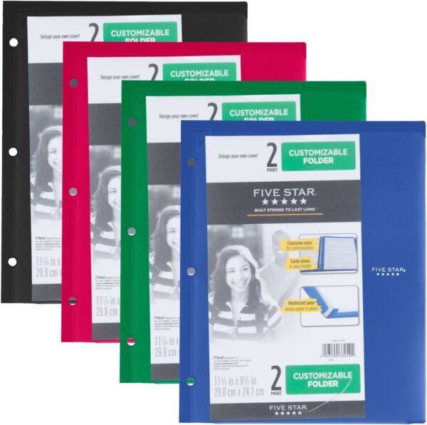 Five Star 2-Pocket Folder, Plastic Folder with Stay-Put Tabs 11 5/8 x 9 1/2 inch