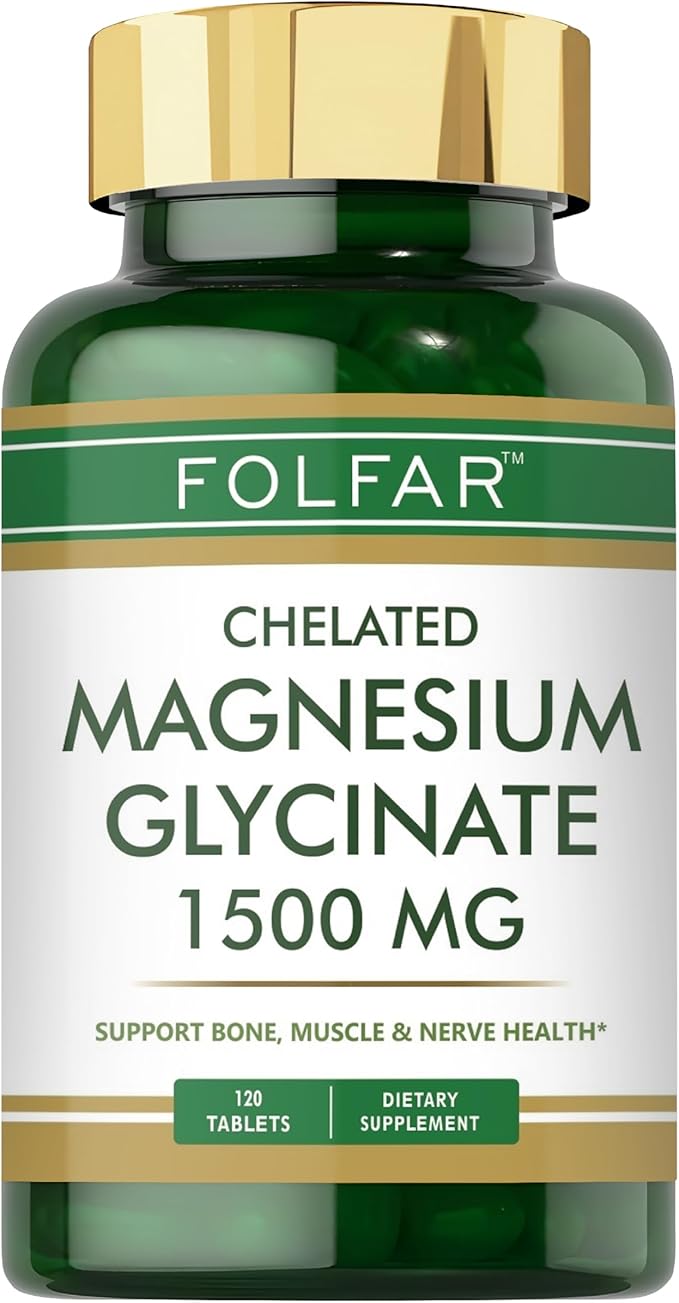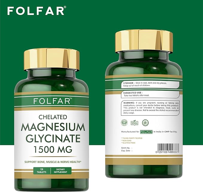 Folfar Chelated Magnesium Glycinate (1500 mg) – 120 Tablets | Supports Bone, Muscle & Nerve Health | Promotes Stress Relief, Sleep Quality, Heart Health & Metabolism | Non-GMO, Gluten free