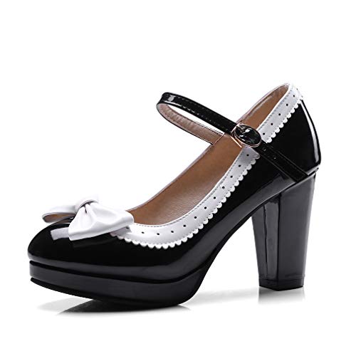 HILIB Woman’s High Heel Lolita Shoes Cute Bowknot Mary Jane Shoes