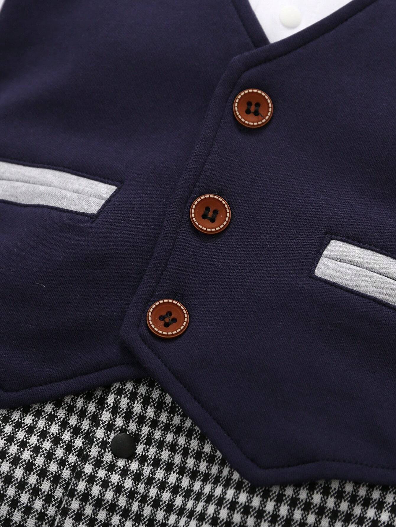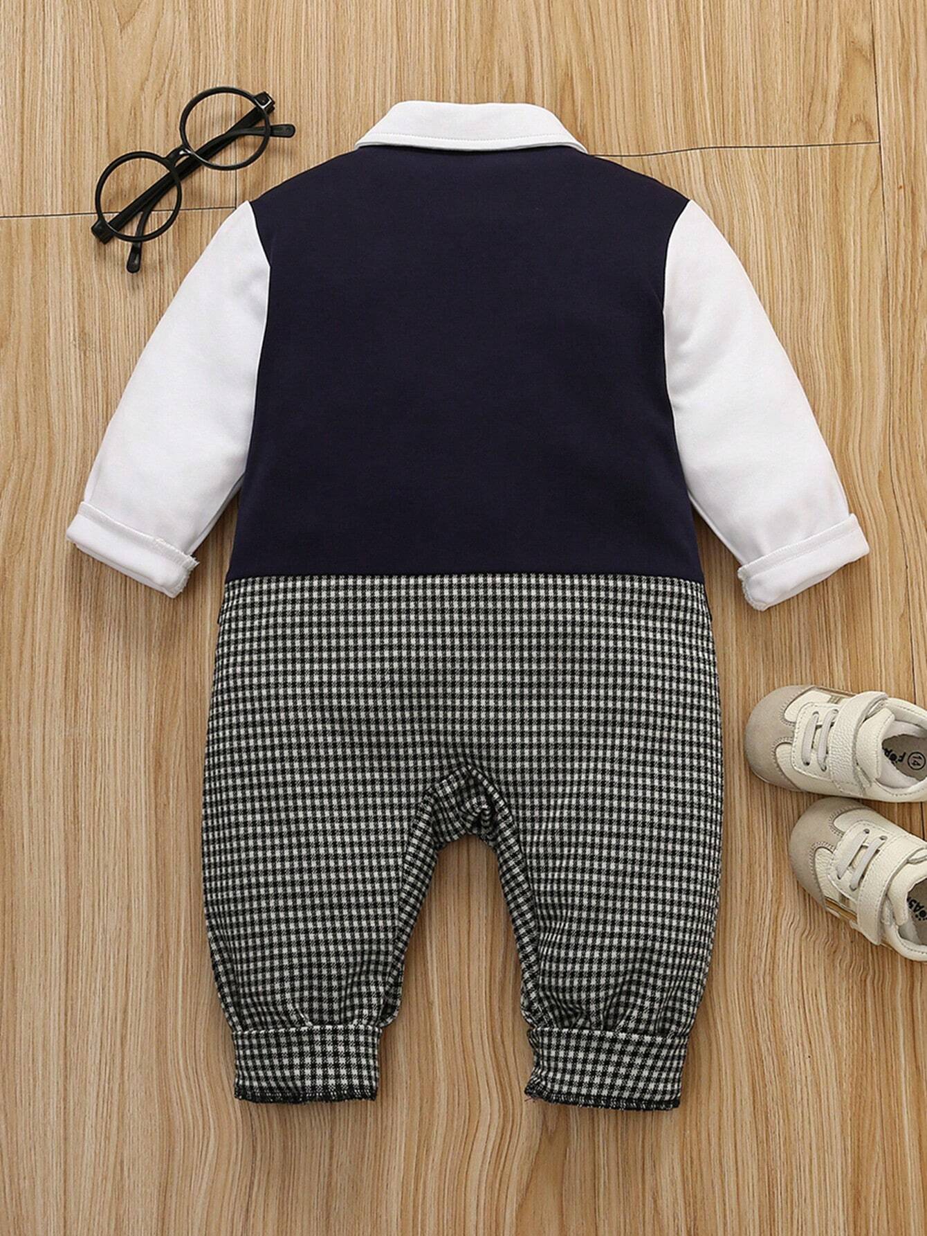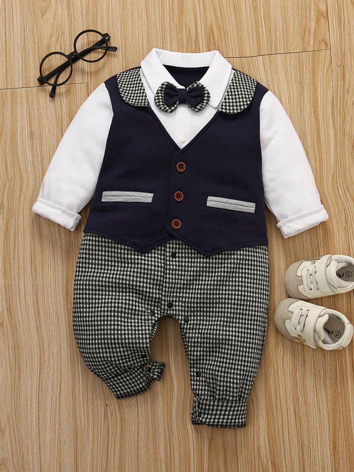 Infant Boys’ Long Sleeve Romper With Cute Bow Tie, Gentleman Style