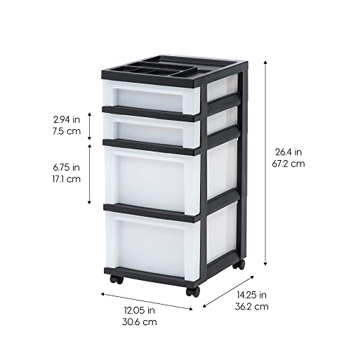 IRIS USA Plastic Drawer Storage Organizer Rolling Cart, with Wheels Casters, 4-Drawers, for Classroom Art Craft Supplies Dresser Closet Bathroom Bedroom, Top Organizer for Small Parts, Black/Pearl