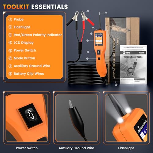 KZYEE KM05 (Simplified of KM10) Super Power Circuit Probe Tester, 12V 24V Automotive Circuit System Diagnostic Tool, AC&DC Voltage/Short Finder/Diode Resistance Component Tester, 13Ft Cable