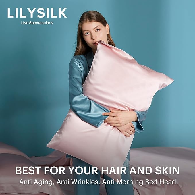 LILYSILK Silk Pillowcase for Hair and Skin Queen-100% Mulberry Silk 19 Momme Both Sides Silk Bed Pillow Cover with Hidden Zipper, 1 Pc (Queen Size 20”x30”, Black)
